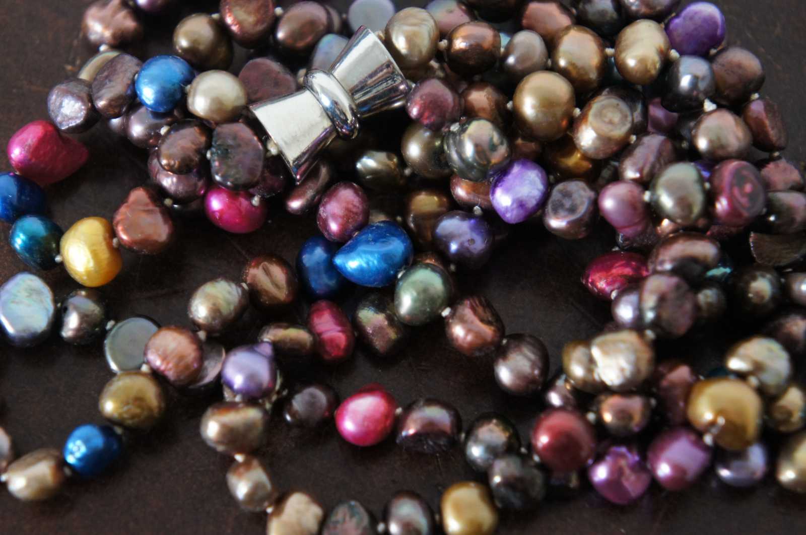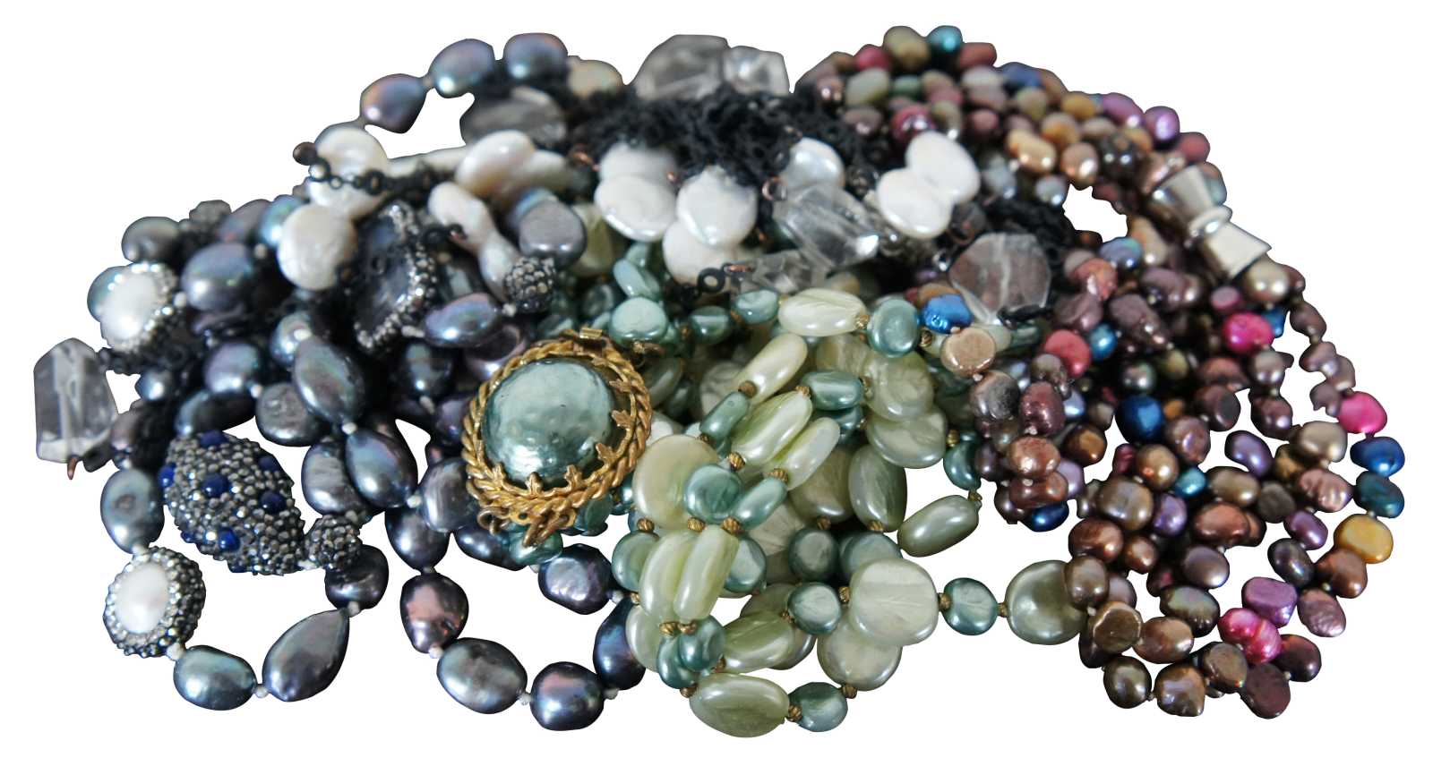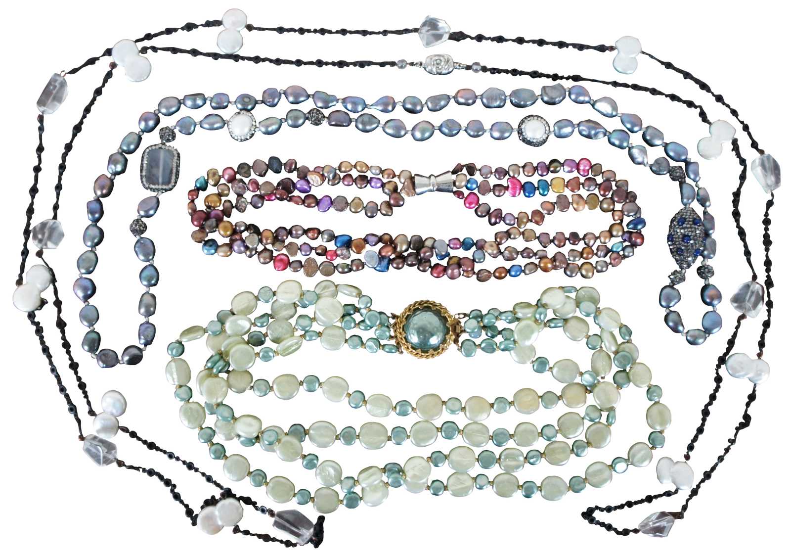 Lot of four vintage necklaces in lovely natural baroque, multi-colored pearls, some accented with metal and crystal beads.