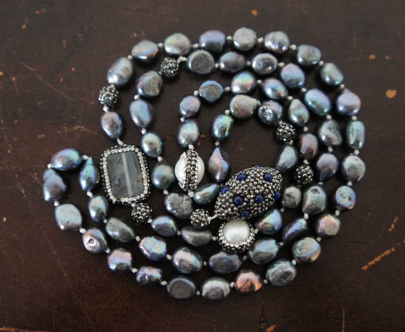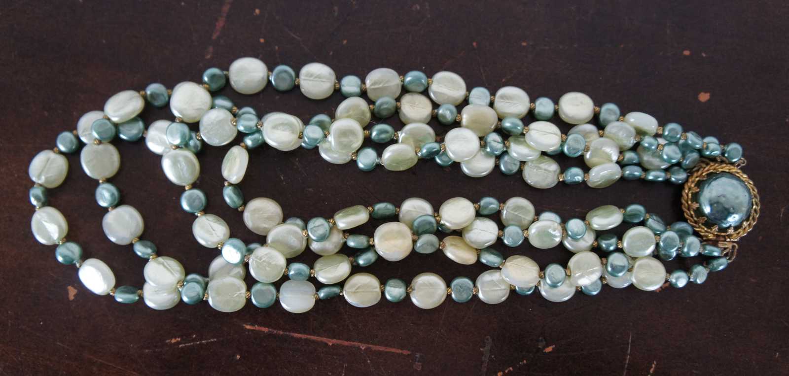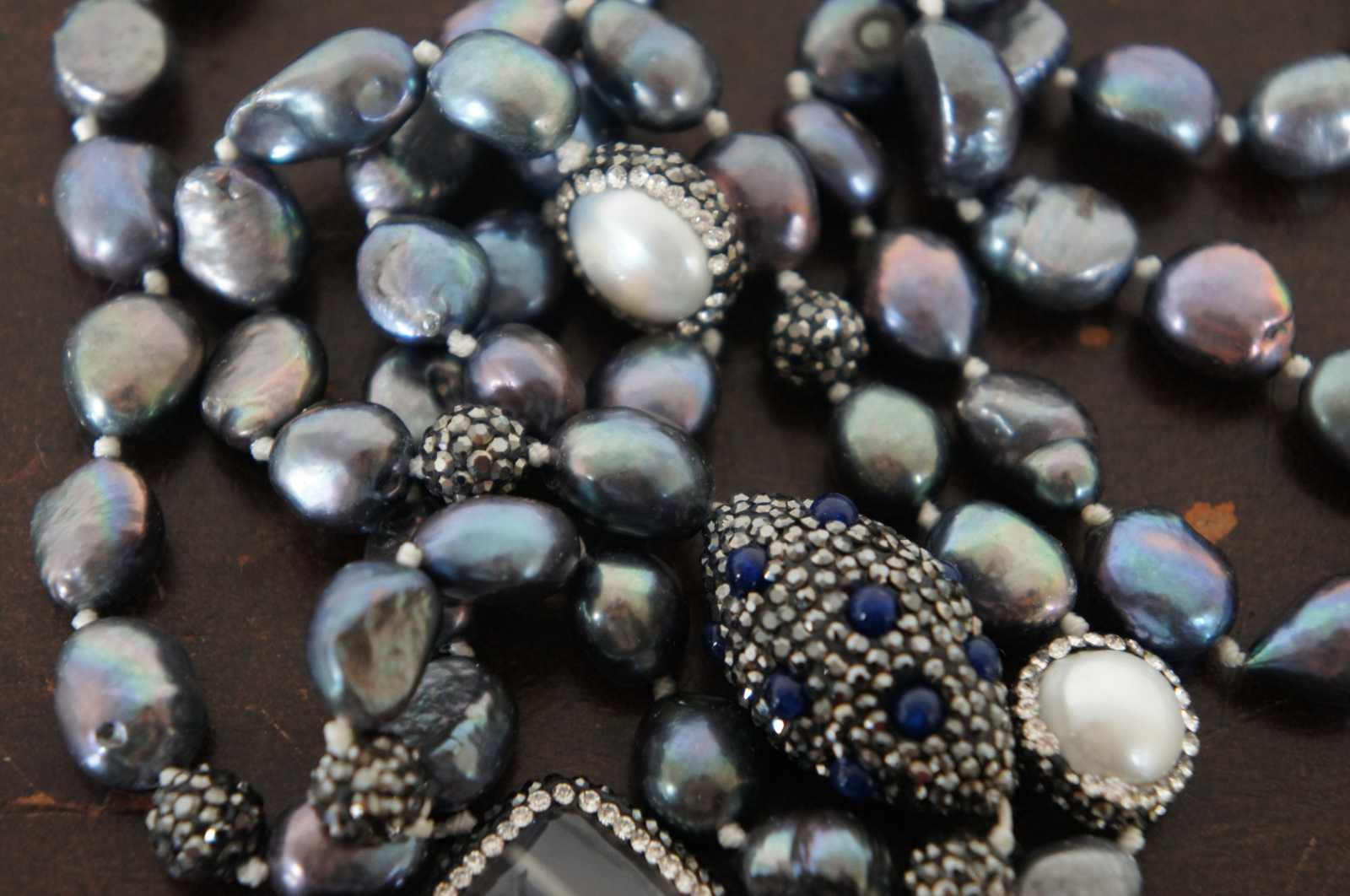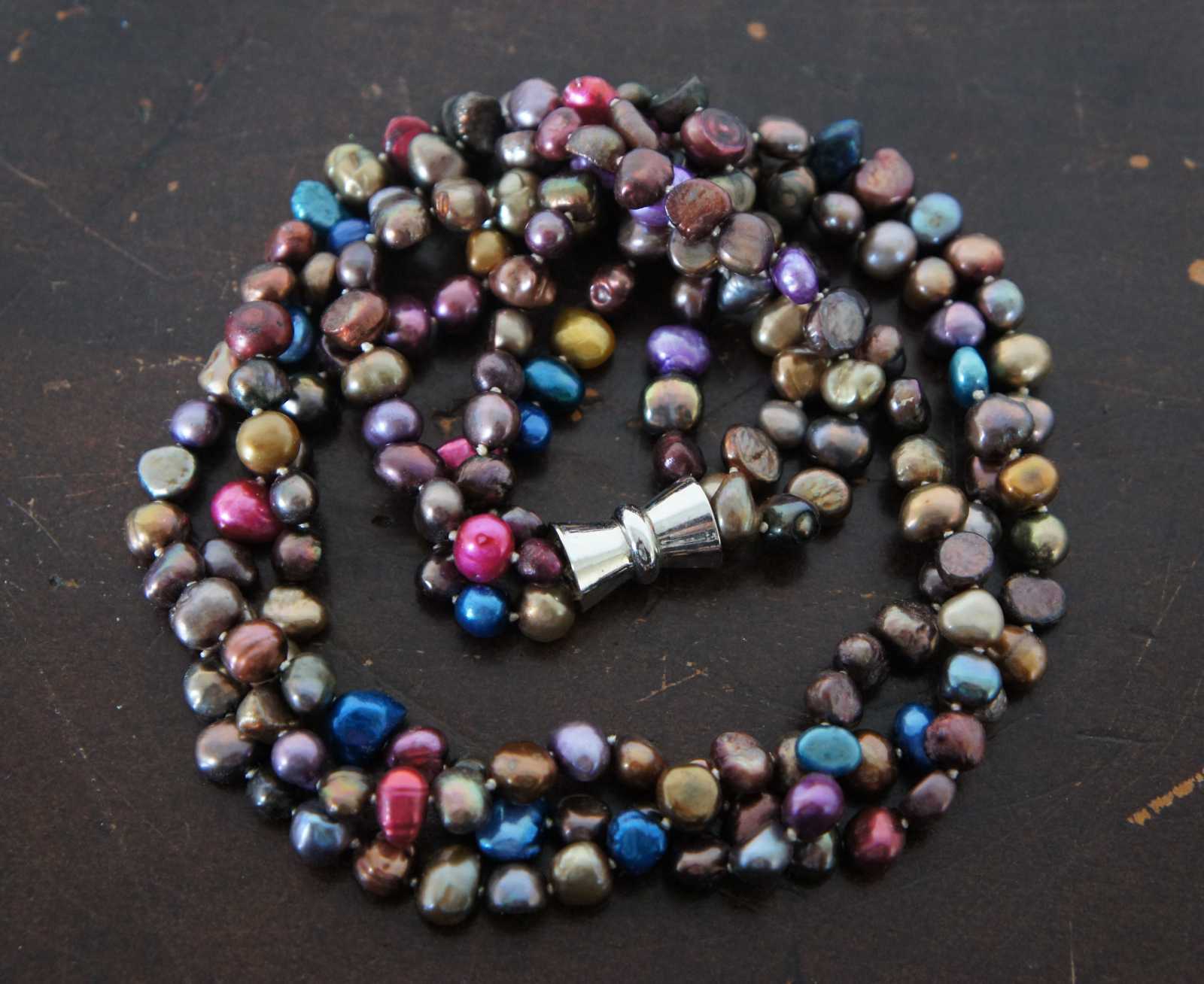 Lot of four vintage necklaces in lovely natural baroque, multi-colored pearls, some accented with metal and crystal beads.