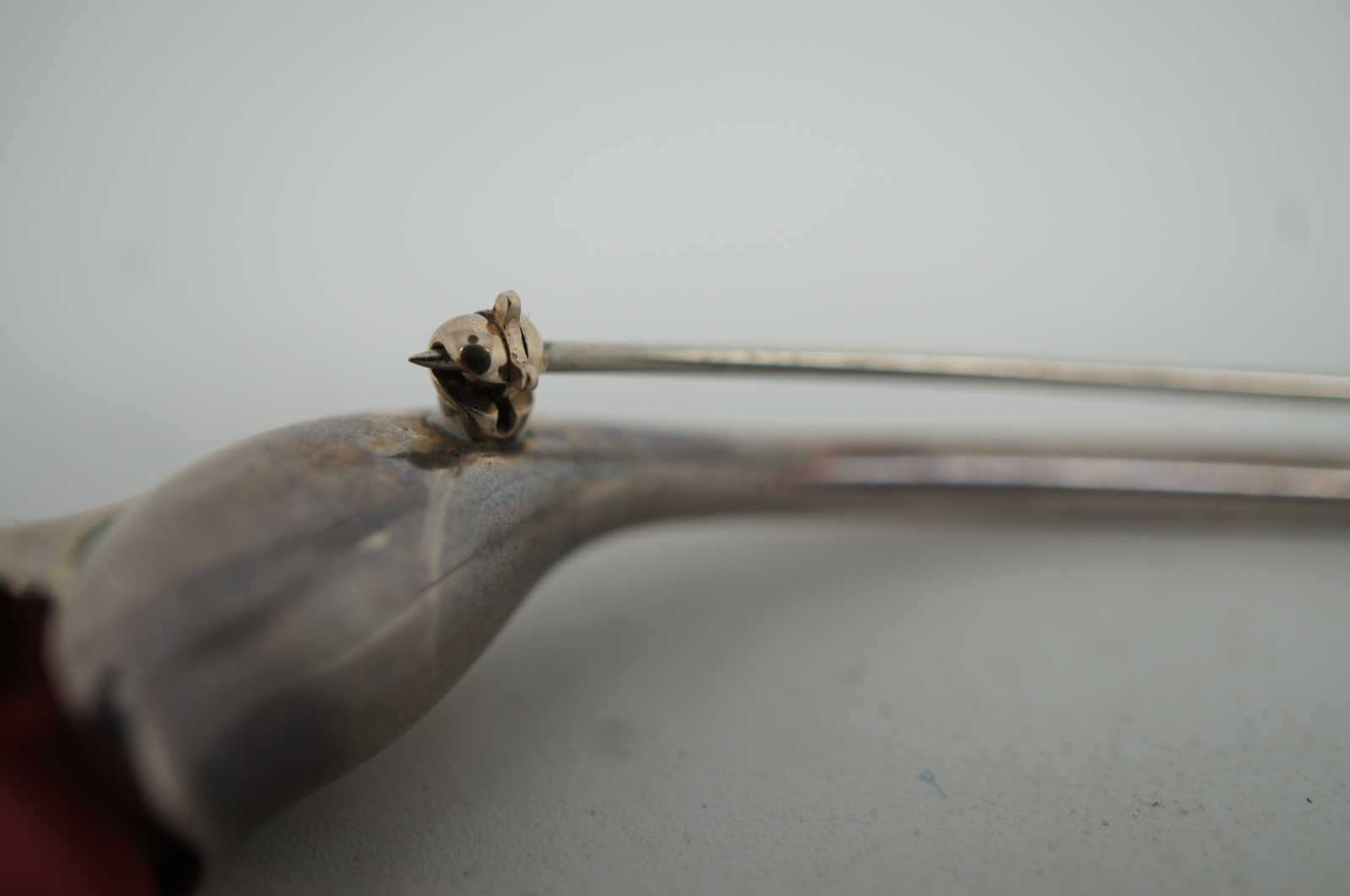Amapola is the Spanish word for poppy. Brooch in sterling silver with red silk. Original designs copyrighted by Elsa Peretti.
