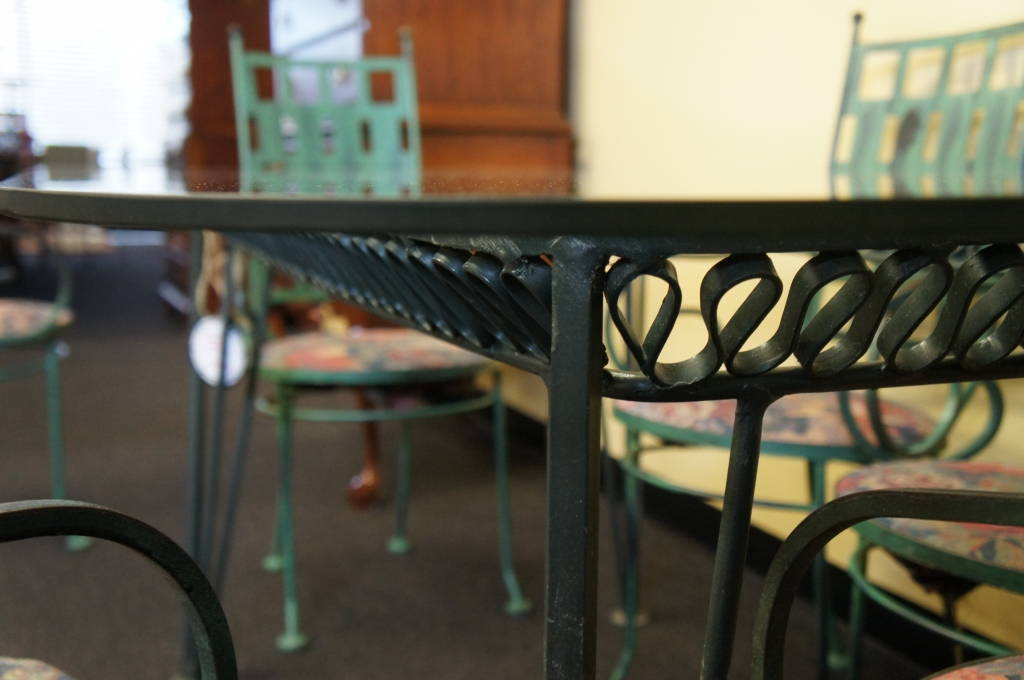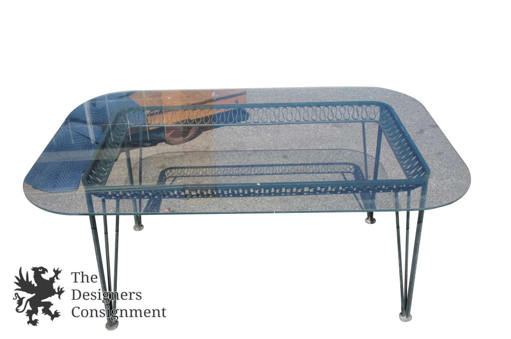 Salterini Mid Century Modern Ribbon Patio Table Porch Dining Glass Top 52