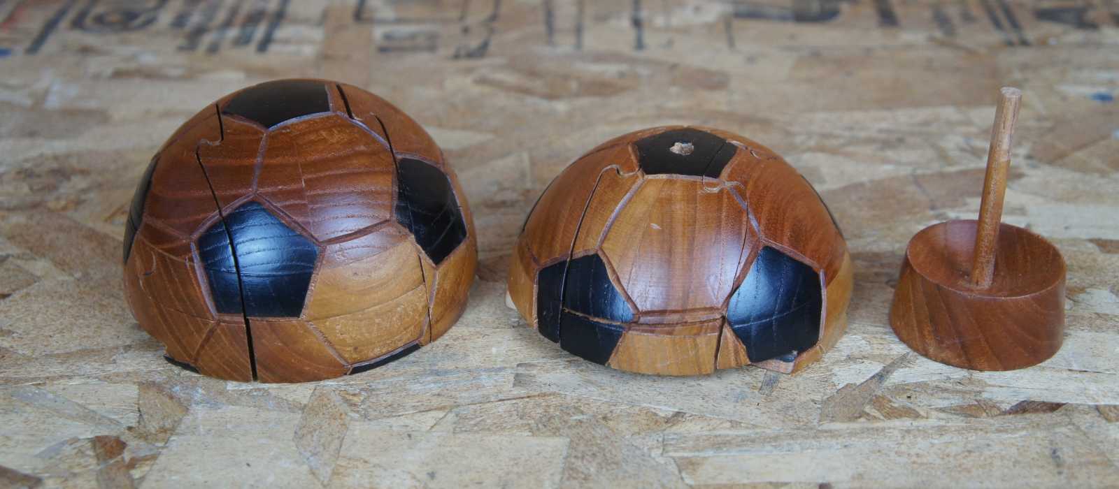 Vintage 3D wood soccer ball brain teaser puzzle. #6142. Made by CHH Games.