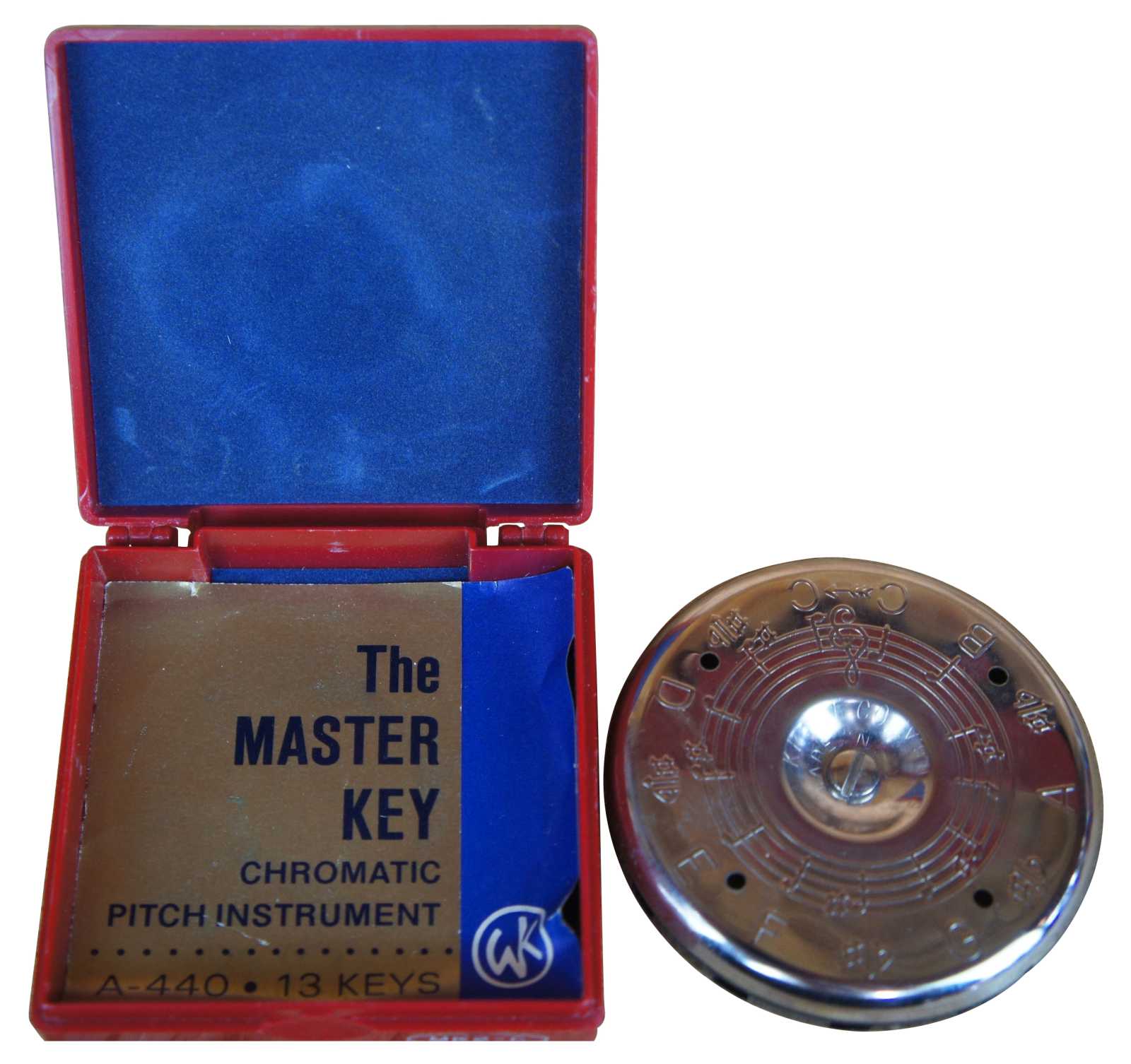 Vintage chromatic scale pitch pipe plays C-C, made by The Master Key with carrying case.