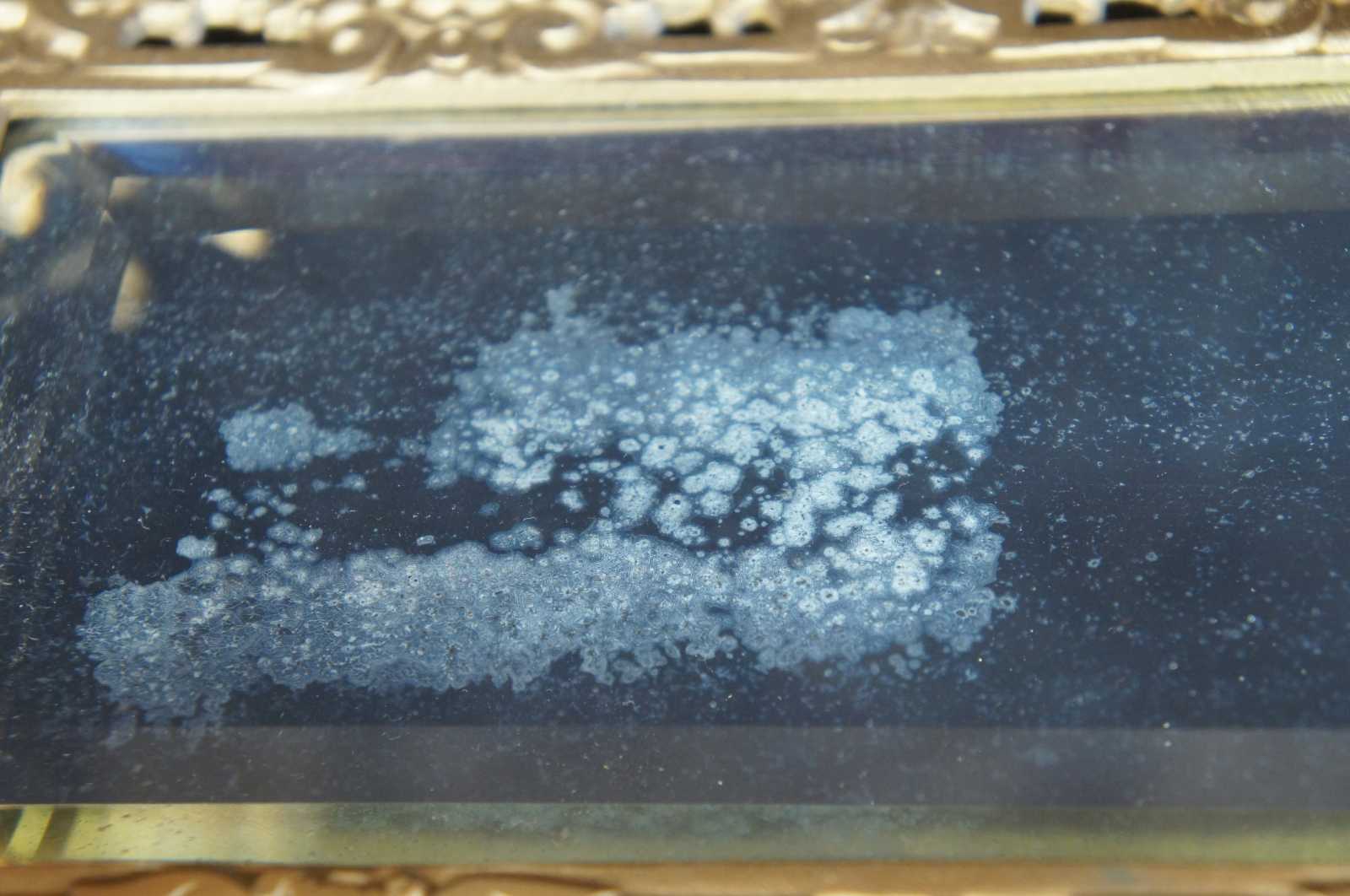 Good antique condition, light wear, silver loss / streaking to mirror.
