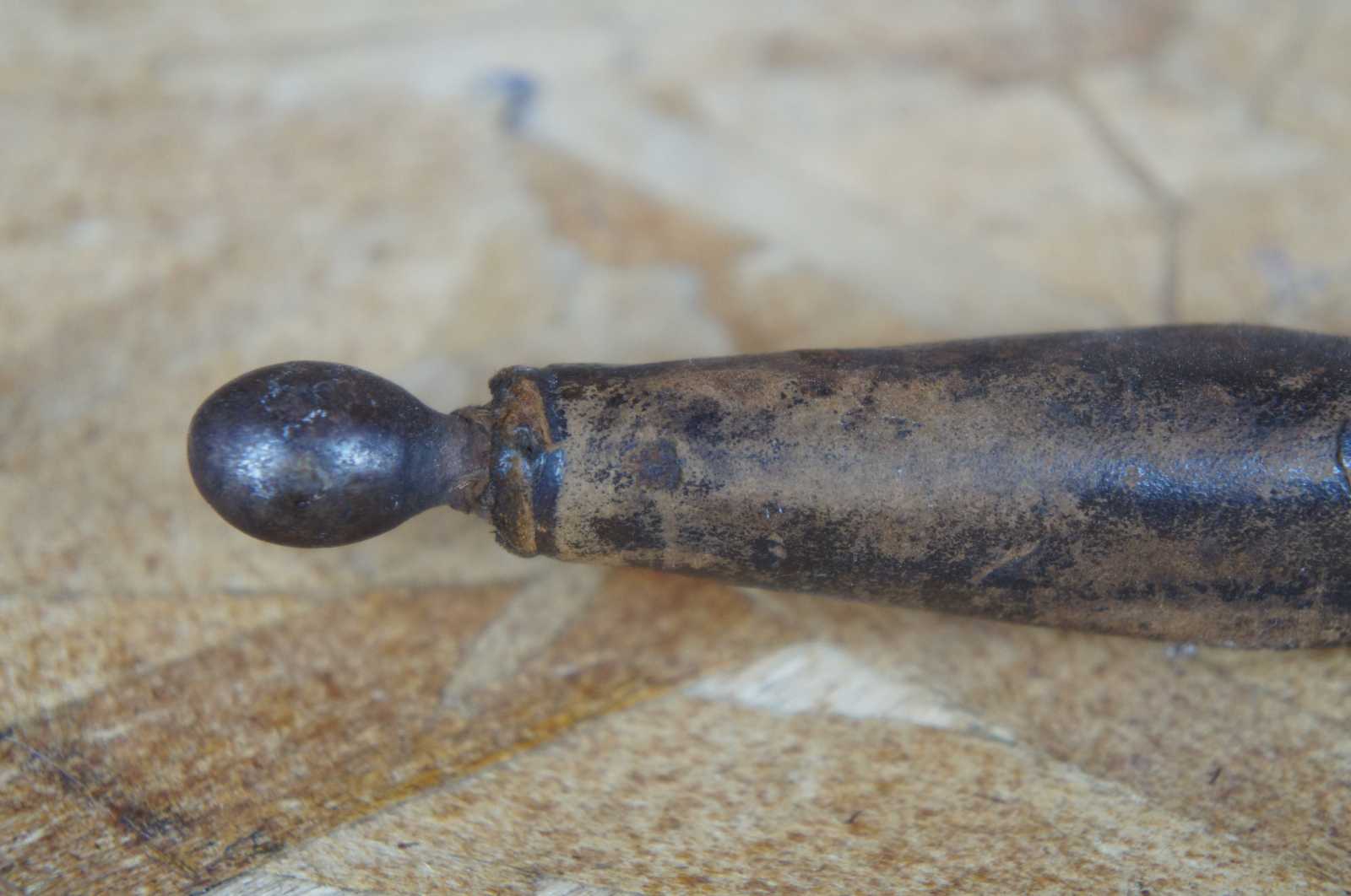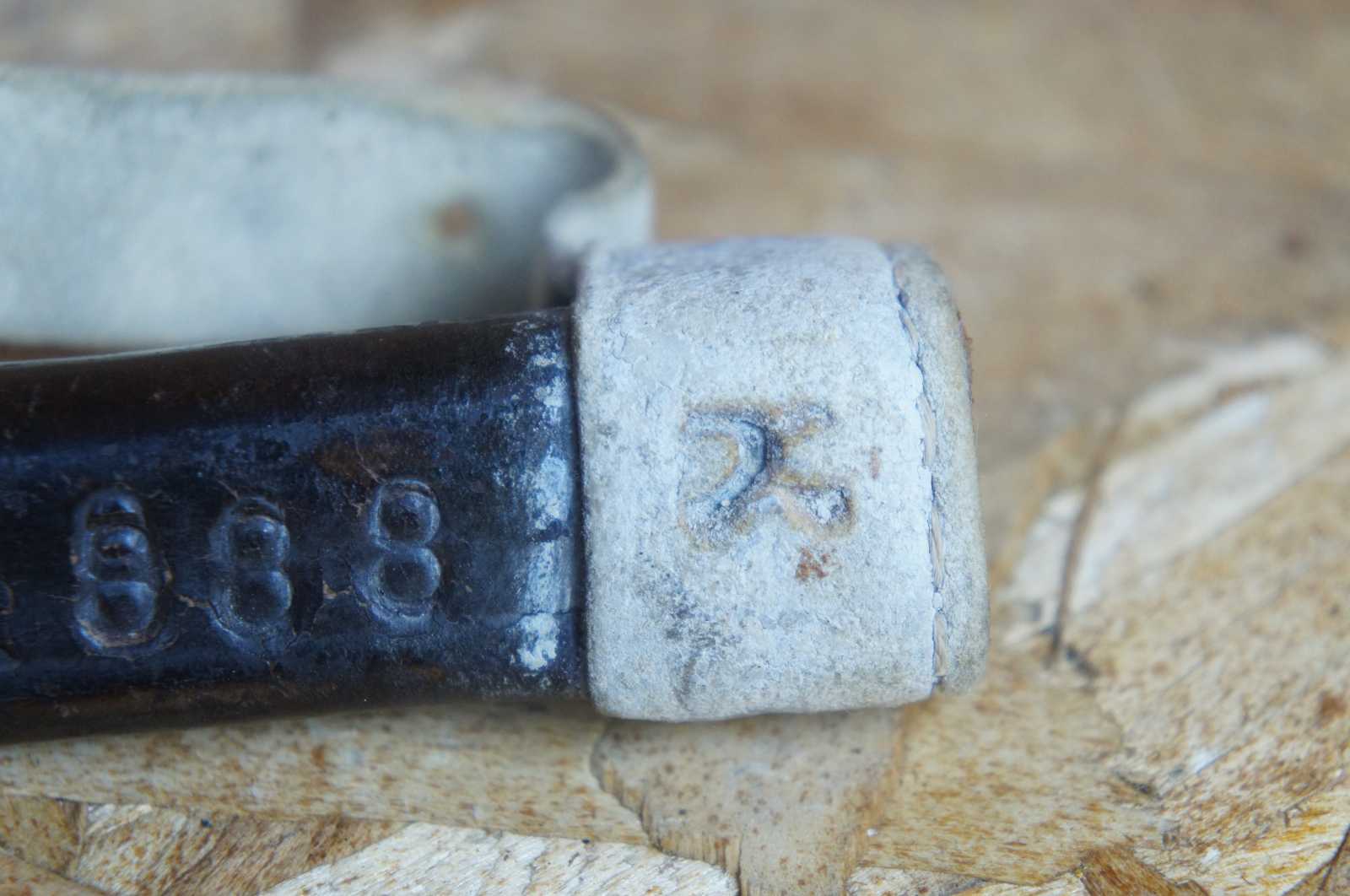 Good antique condition, wear to leather, rust.