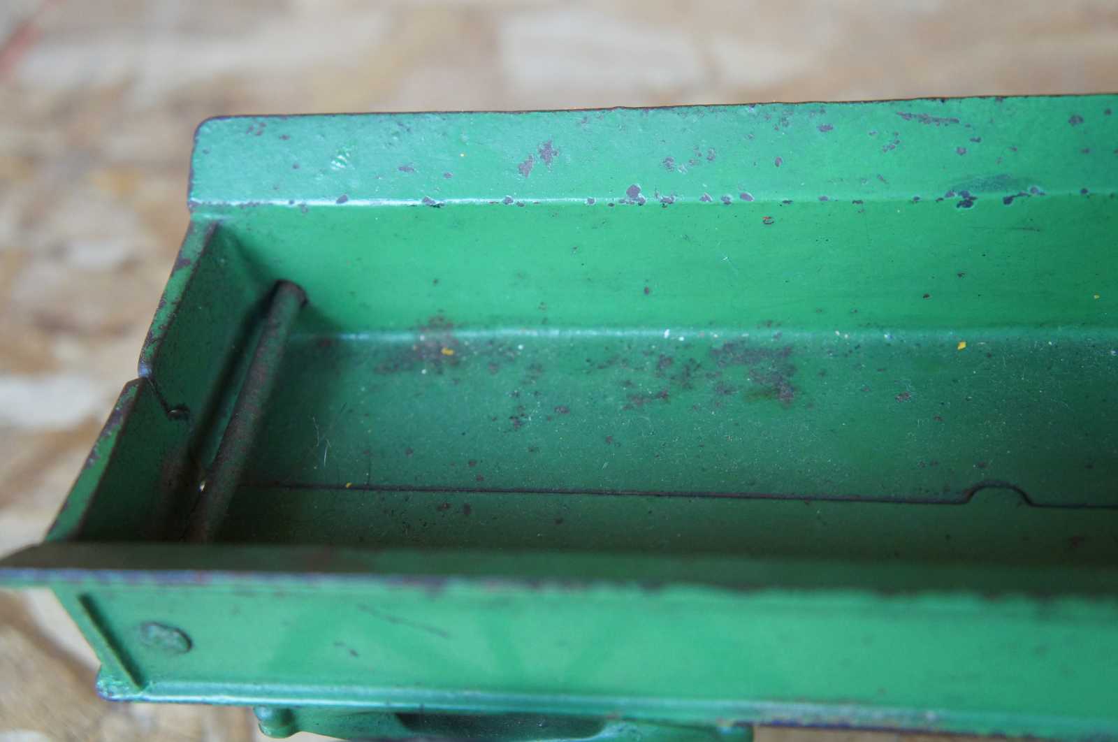 Good antique condition, wear and distressing, paint loss, rust, broken chain, back wheel broken at axle.