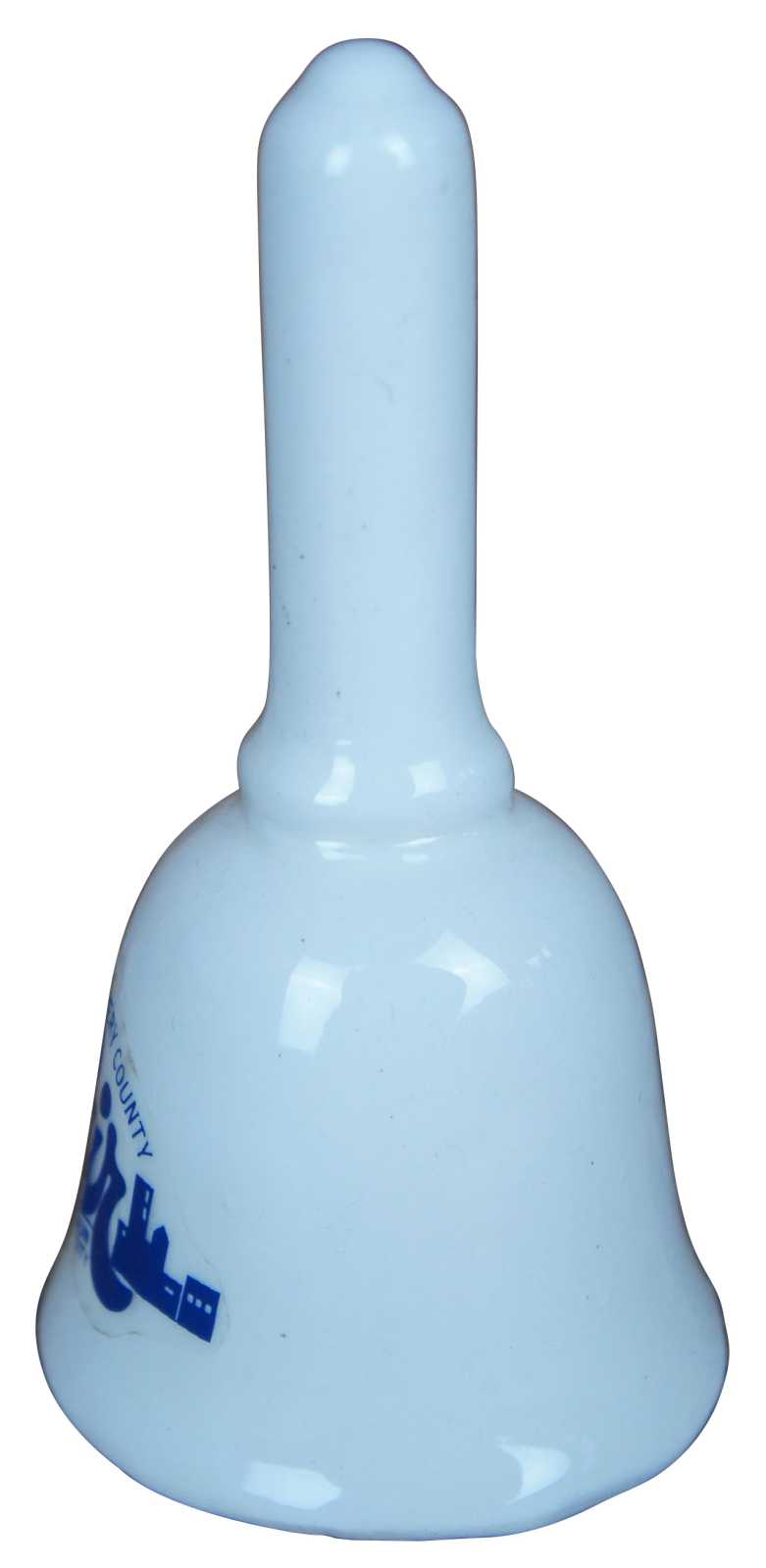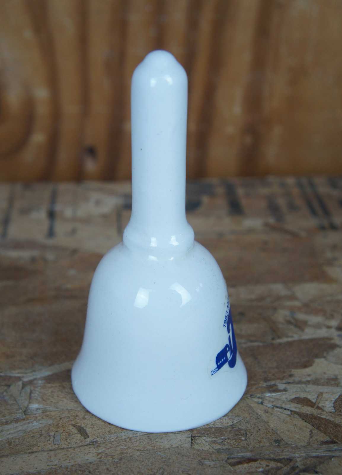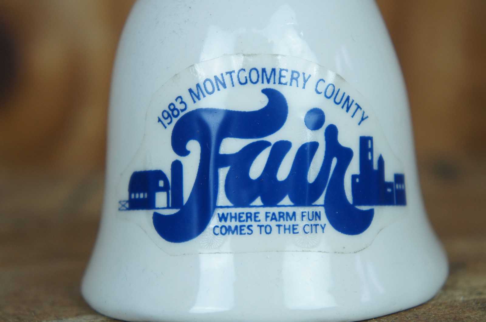 Collectible 1983 Dayton Ohio Montgomery County fair bell made of white porcelain 'Where Farm Fun Comes to the City'.