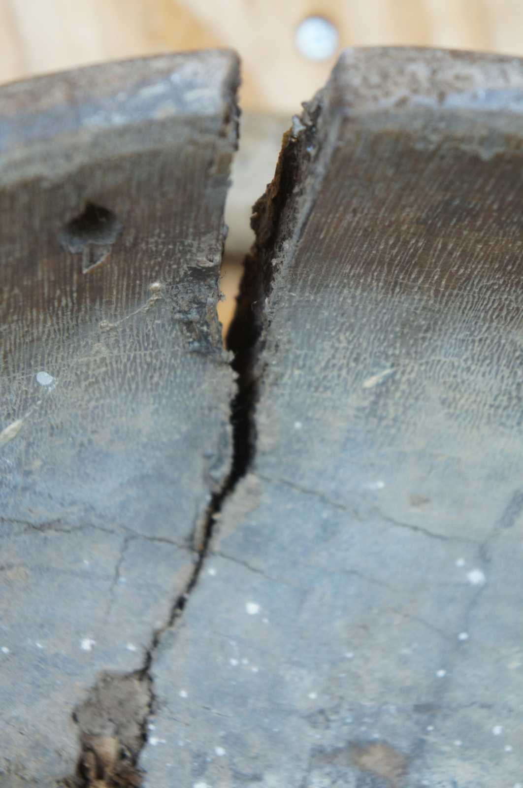 Good antique condition, wear and distressing commensurate with age and use, cracks / splitting / finish loss.