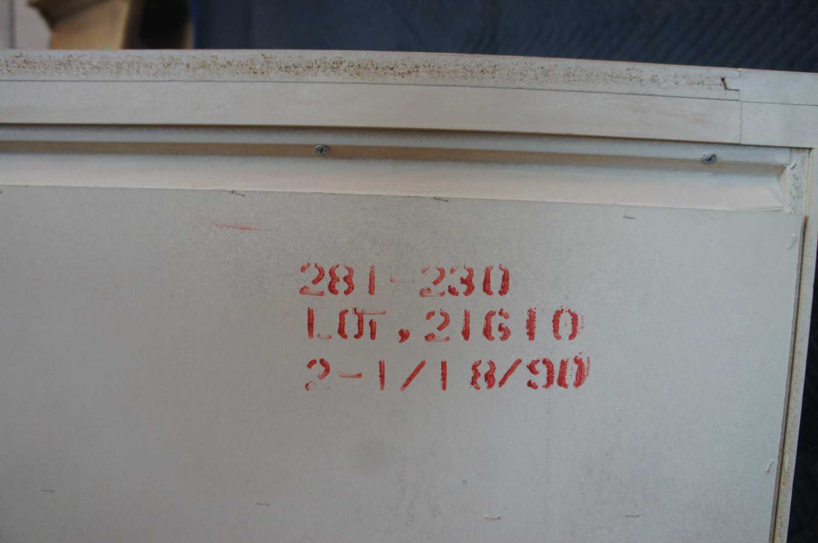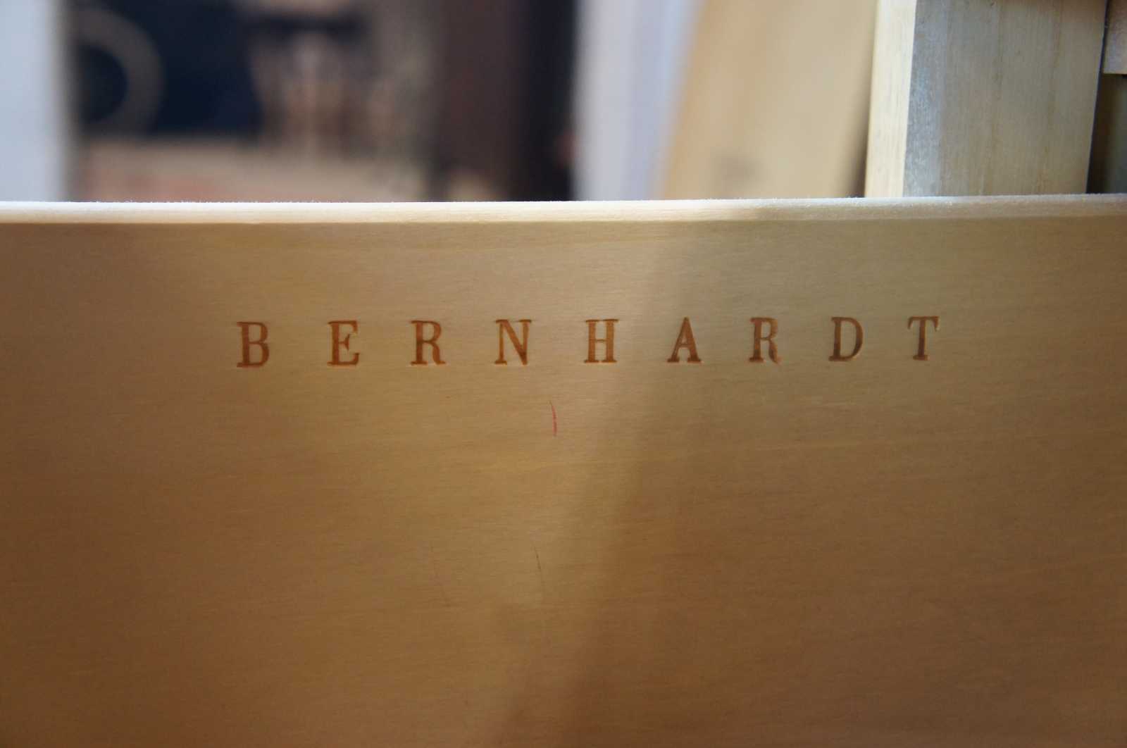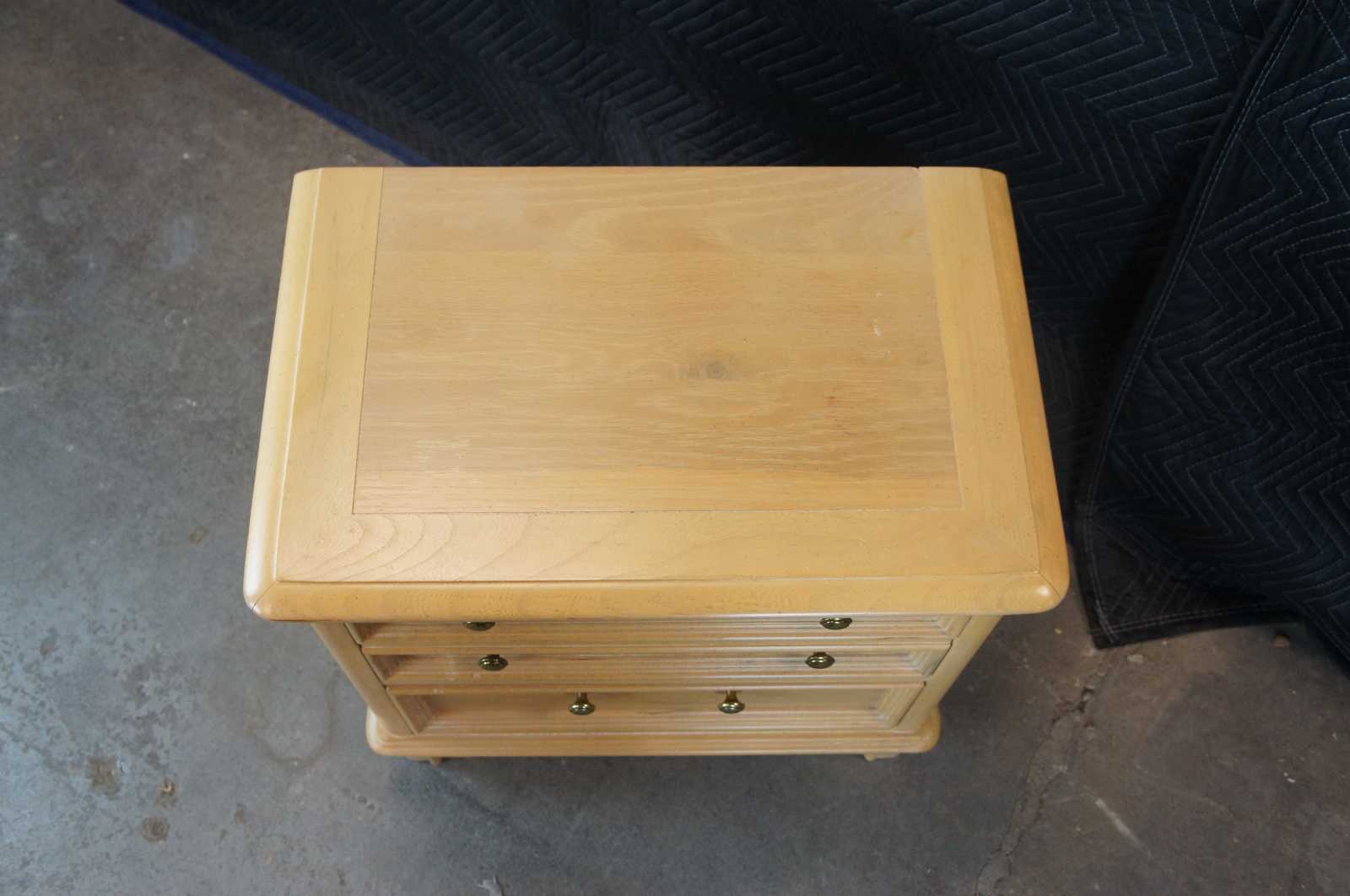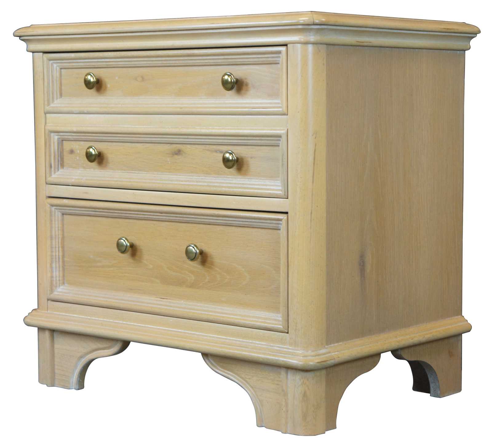 Vintage 1990s Bernhardt chest or nightstand. Made of oak featuring two drawers with brass hardware and bracket feet. 281 - 230.