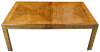 Vintage Drexel Heritage mid century modern parsons style extendable dining table. Made of walnut featuring rectangular form with matchbook top and three large extendable leaves. 955-344-34 - 475.