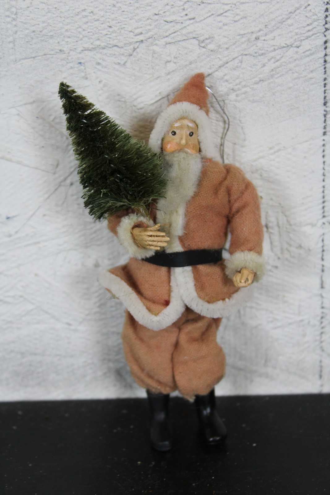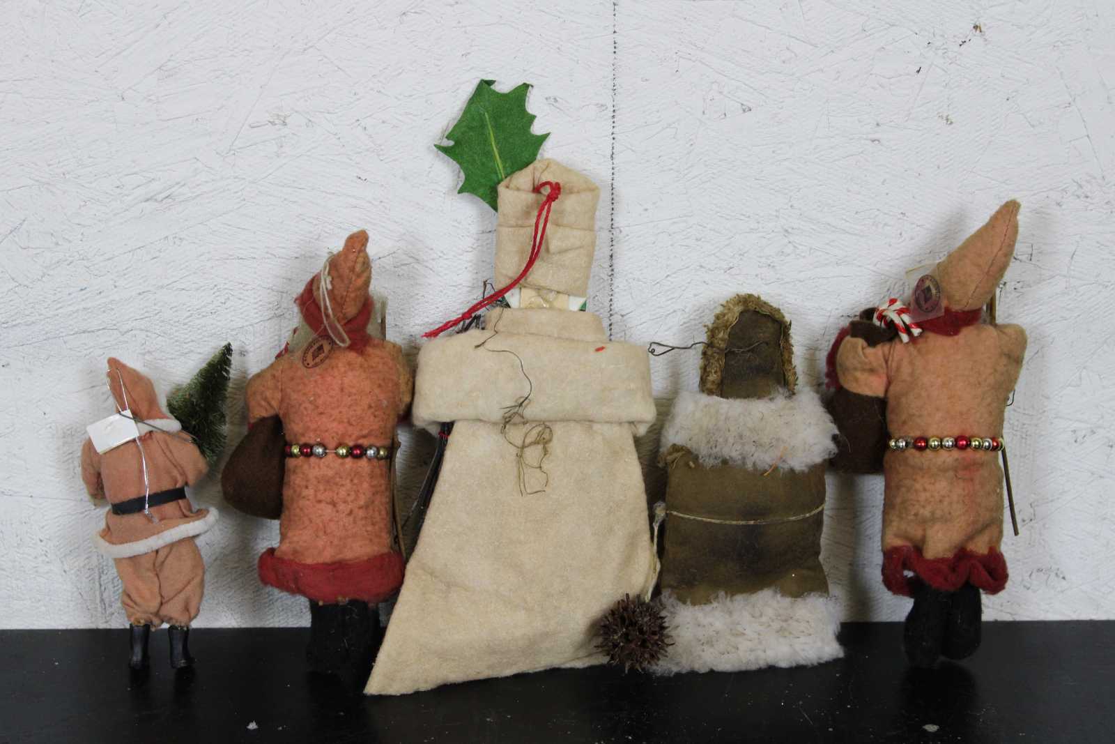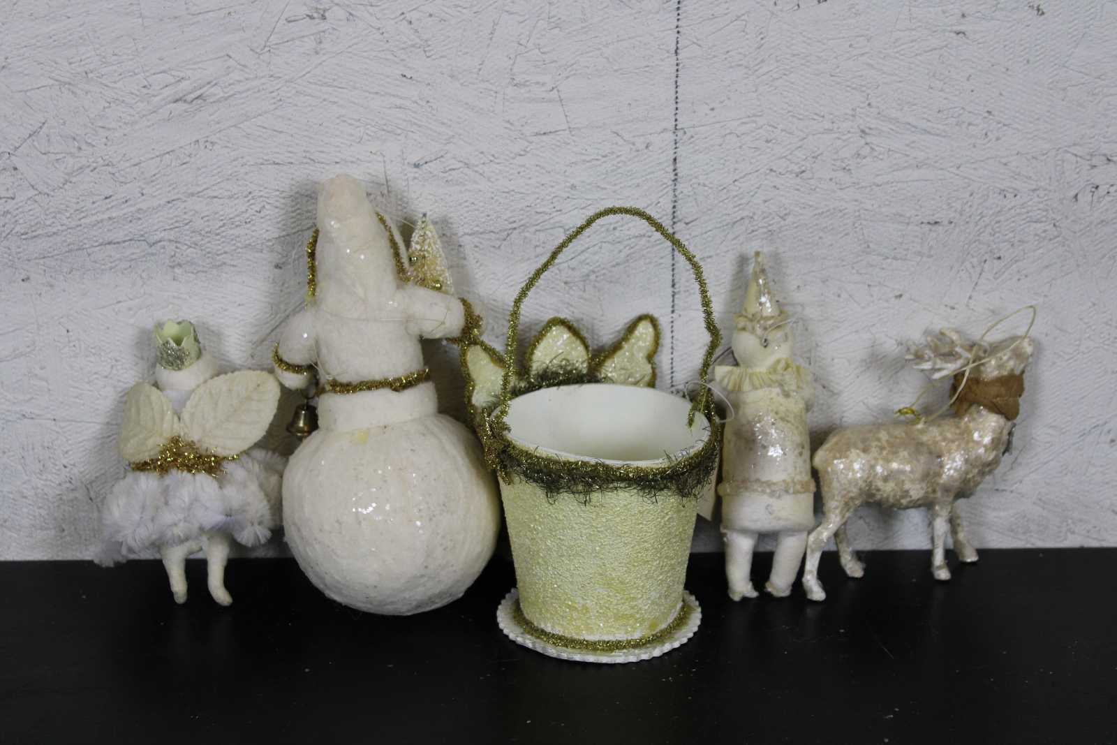 Lot of 10 vintage German inspired folk art ornaments featuring Santa Claus, angels, a reindeer, and a tinman snowman clown. s.