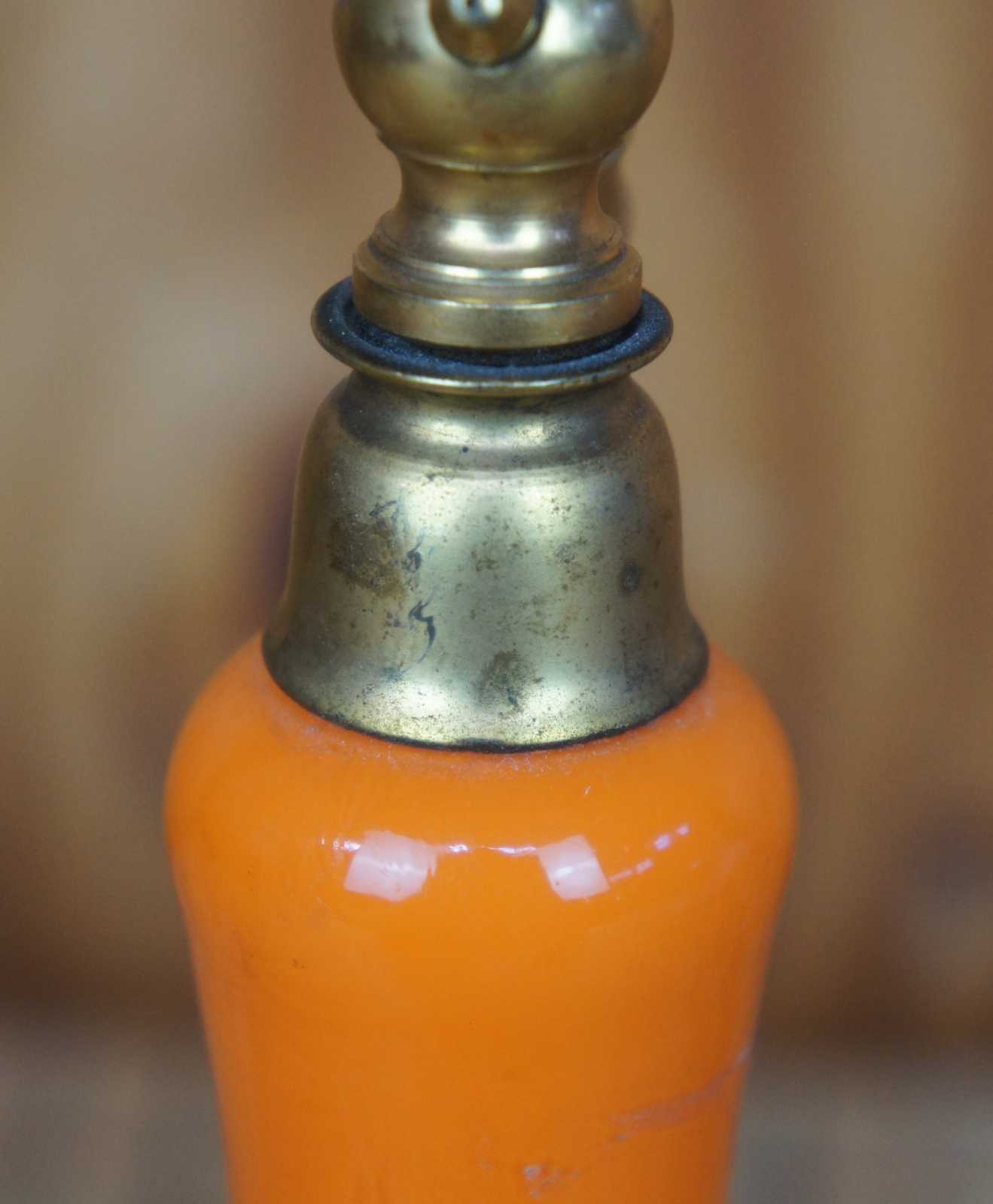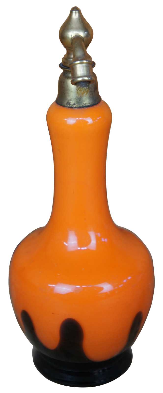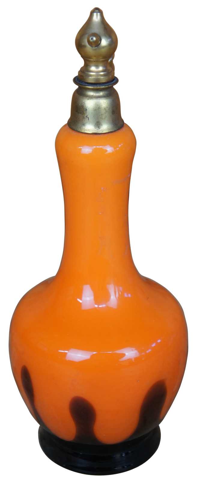Antique Czechoslovakia (Czech) / German (Germany) tango orange art glass perfume atomizer bottle marked both Czechoslovakia and Germany on the bottom.