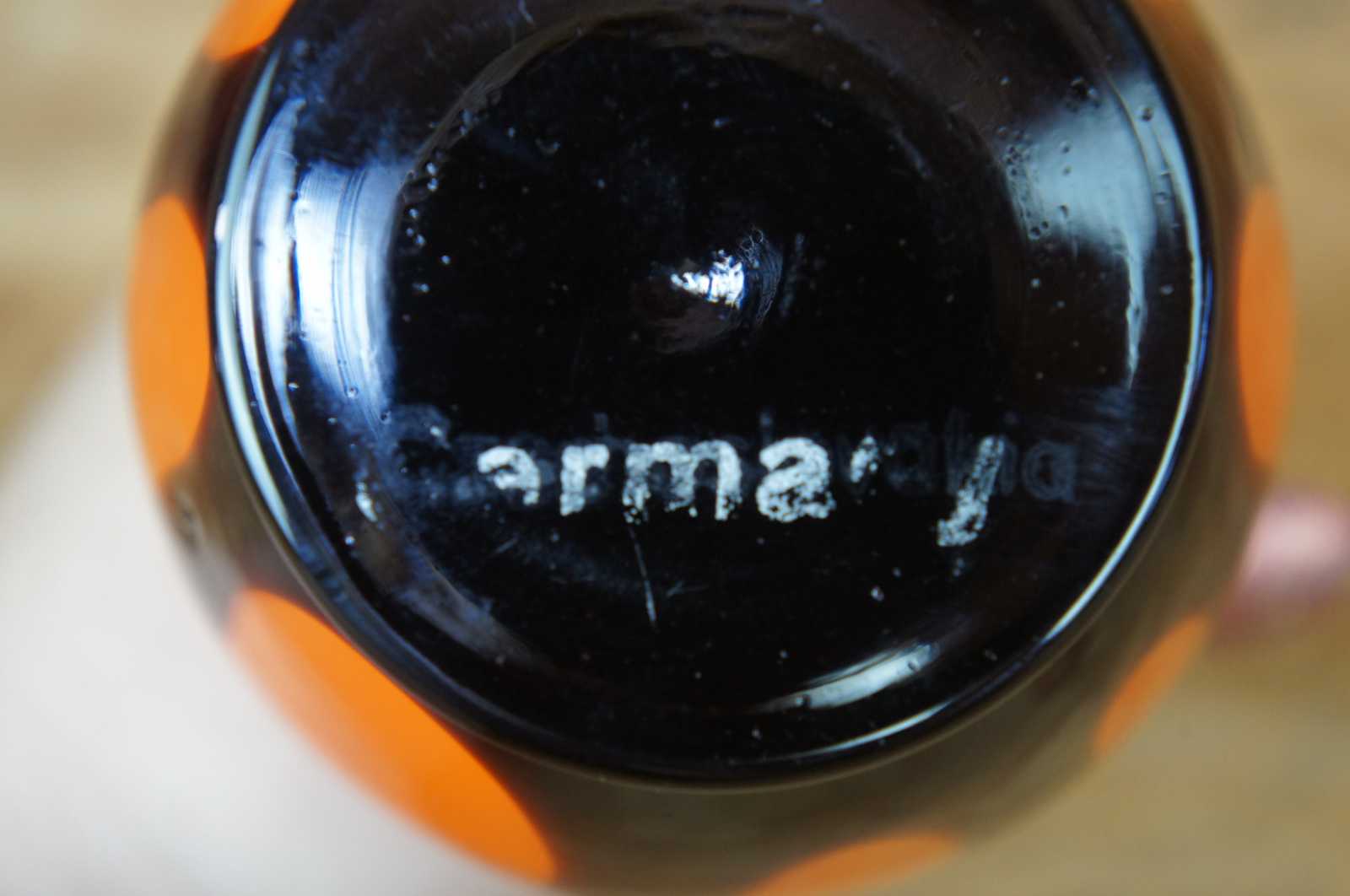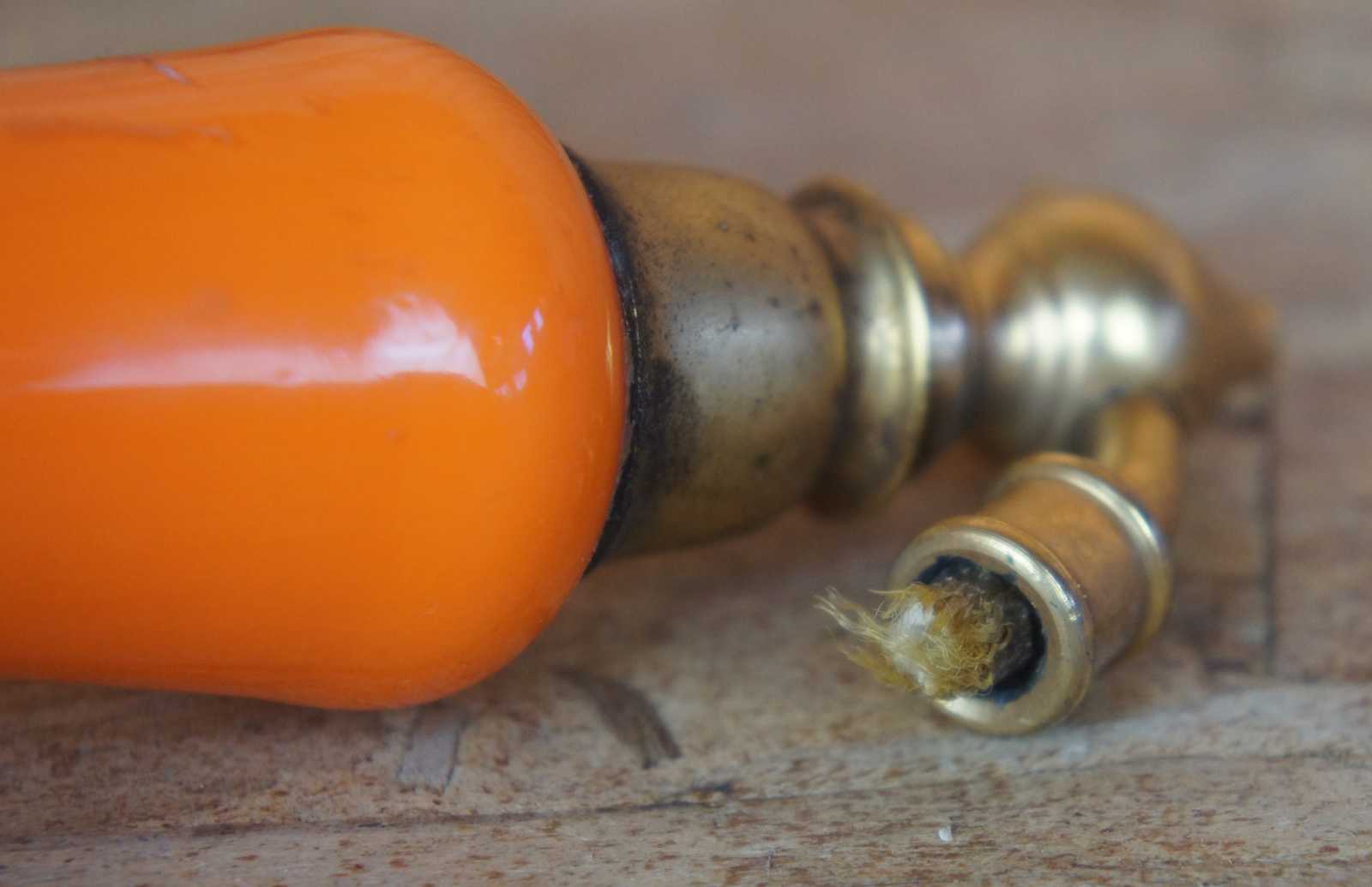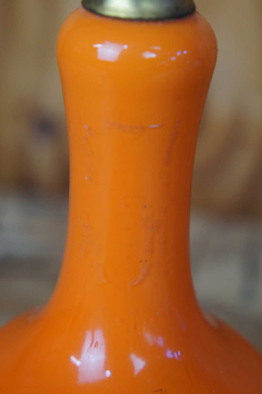 Antique Czechoslovakia (Czech) / German (Germany) tango orange art glass perfume atomizer bottle marked both Czechoslovakia and Germany on the bottom.