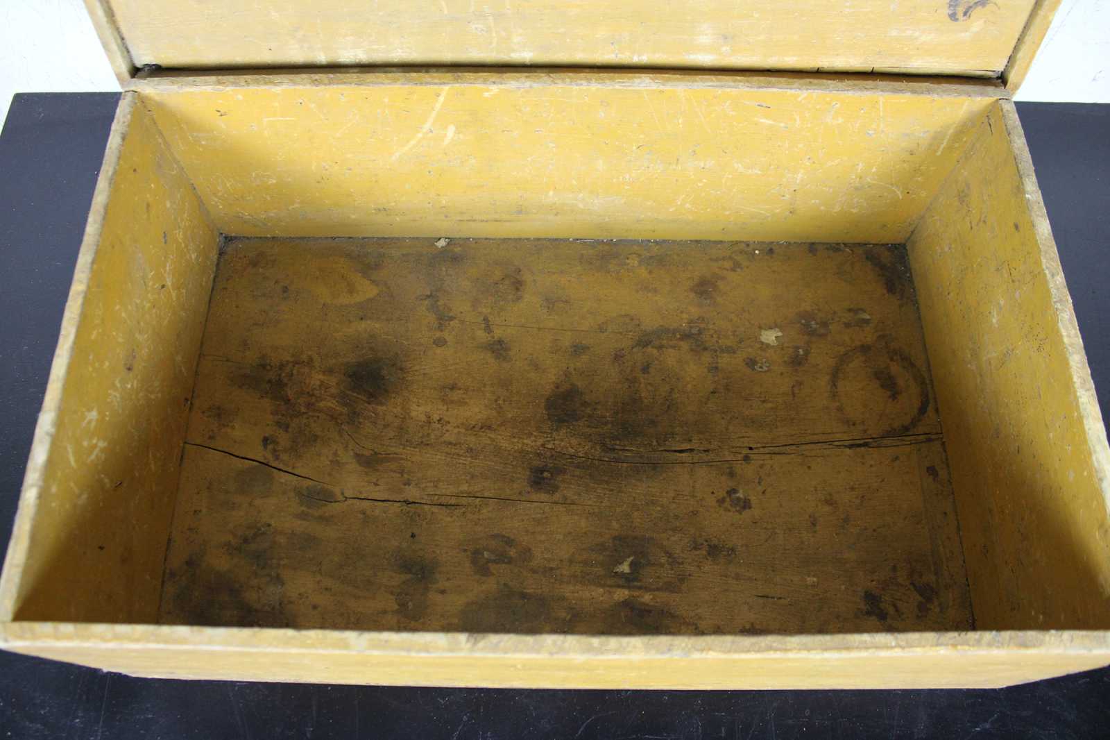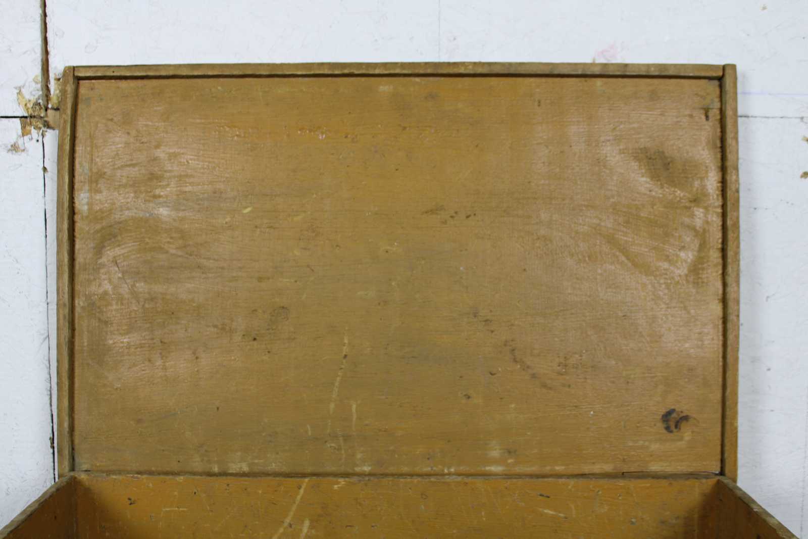 Antique primitive country farmhouse early American folk art style yellow painted pine toy or blanket chest / trunk.