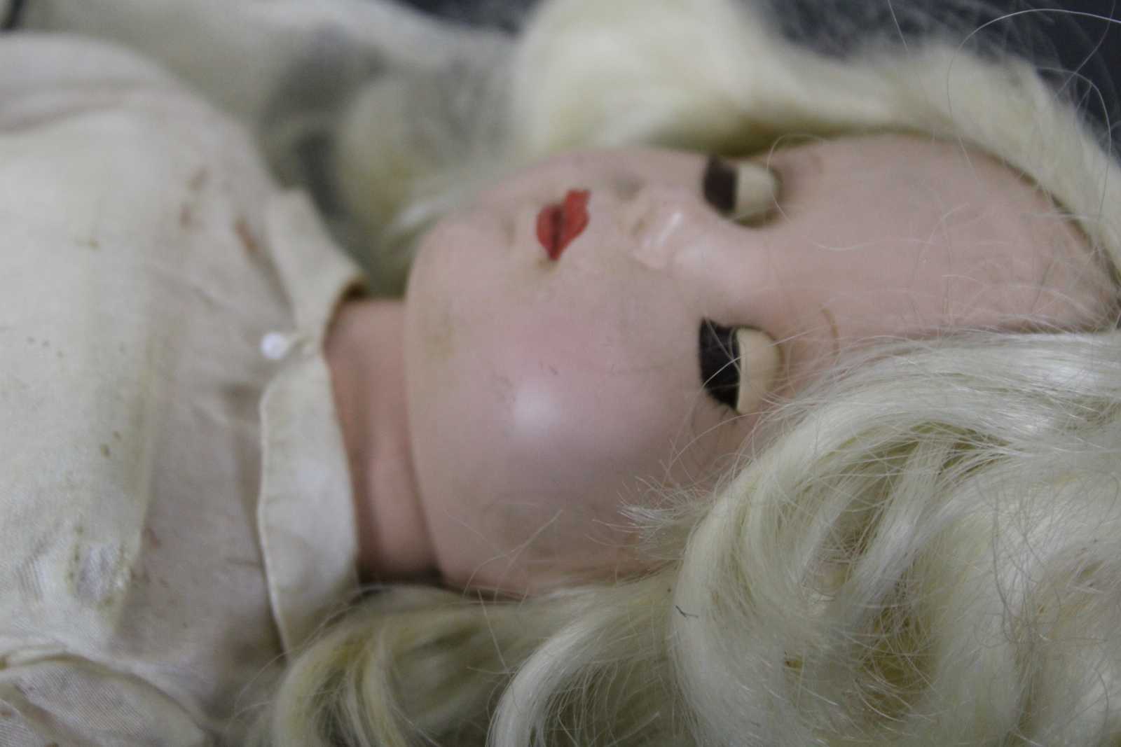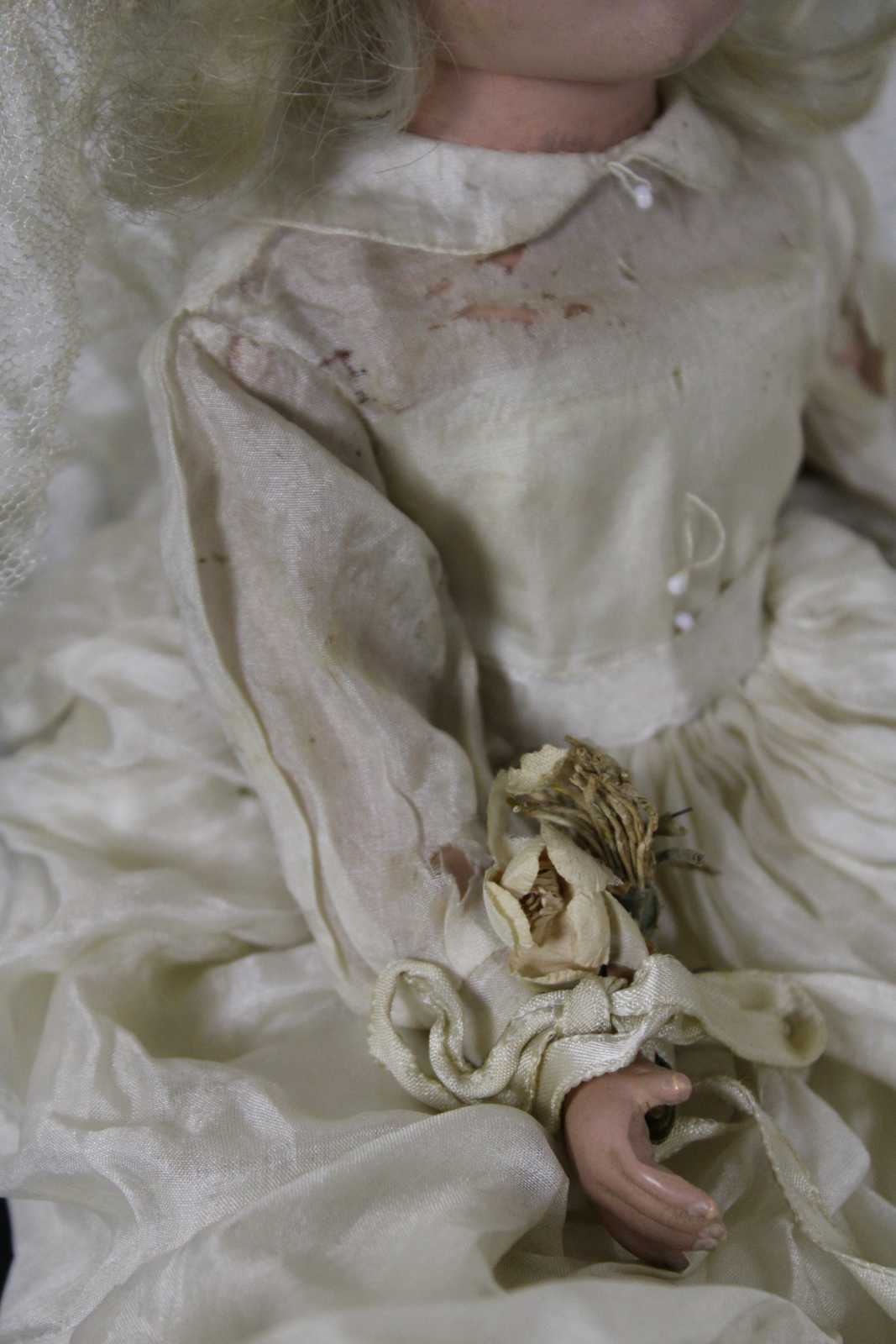 Good Overall - Tears/moth holes to clothing; gentle wear to surface.