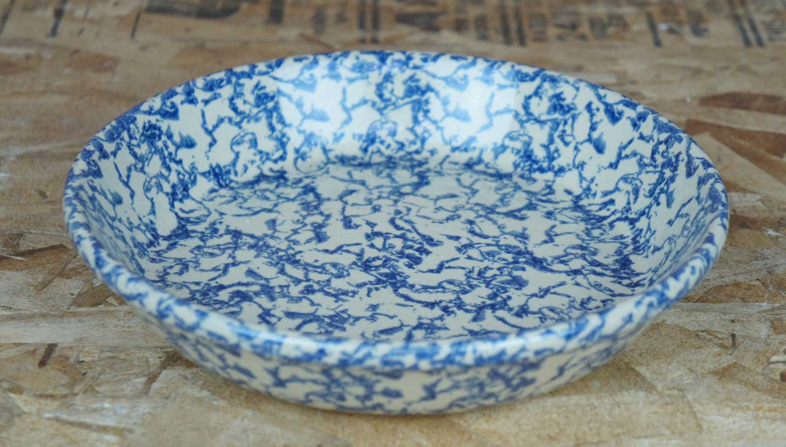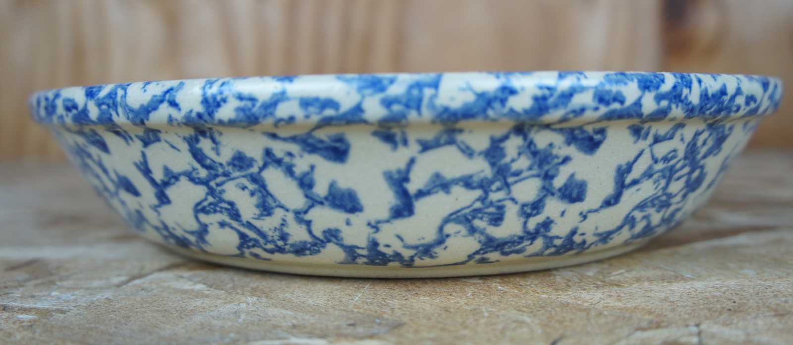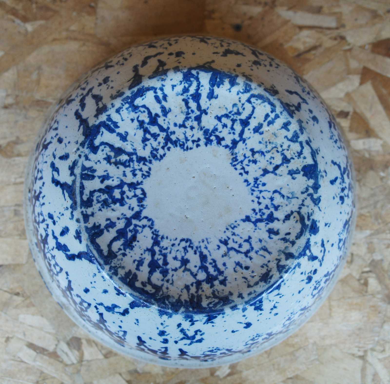 Two vintage spongeware pottery serving / mixing bowls. Attributed to Robinson Ransbottom Pottery of Roseville Ohio, RRP USA.