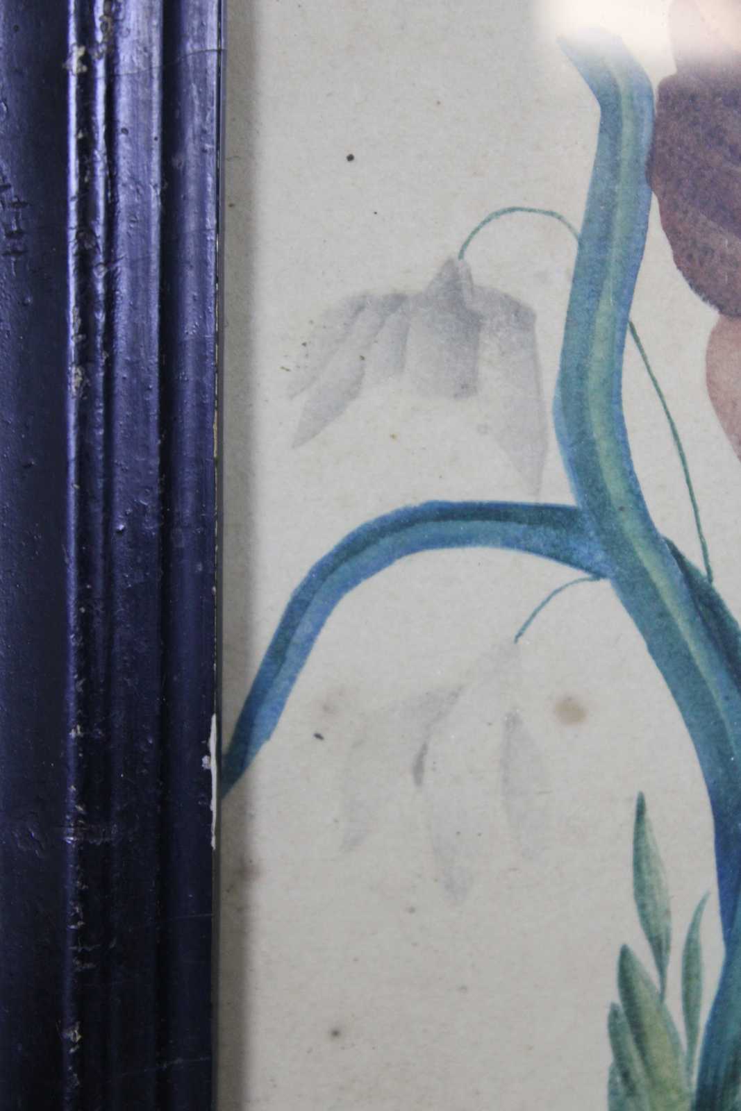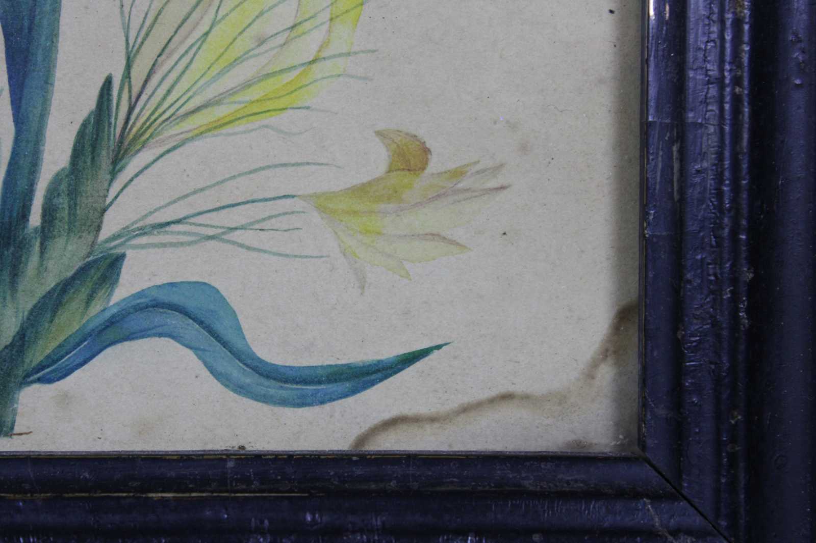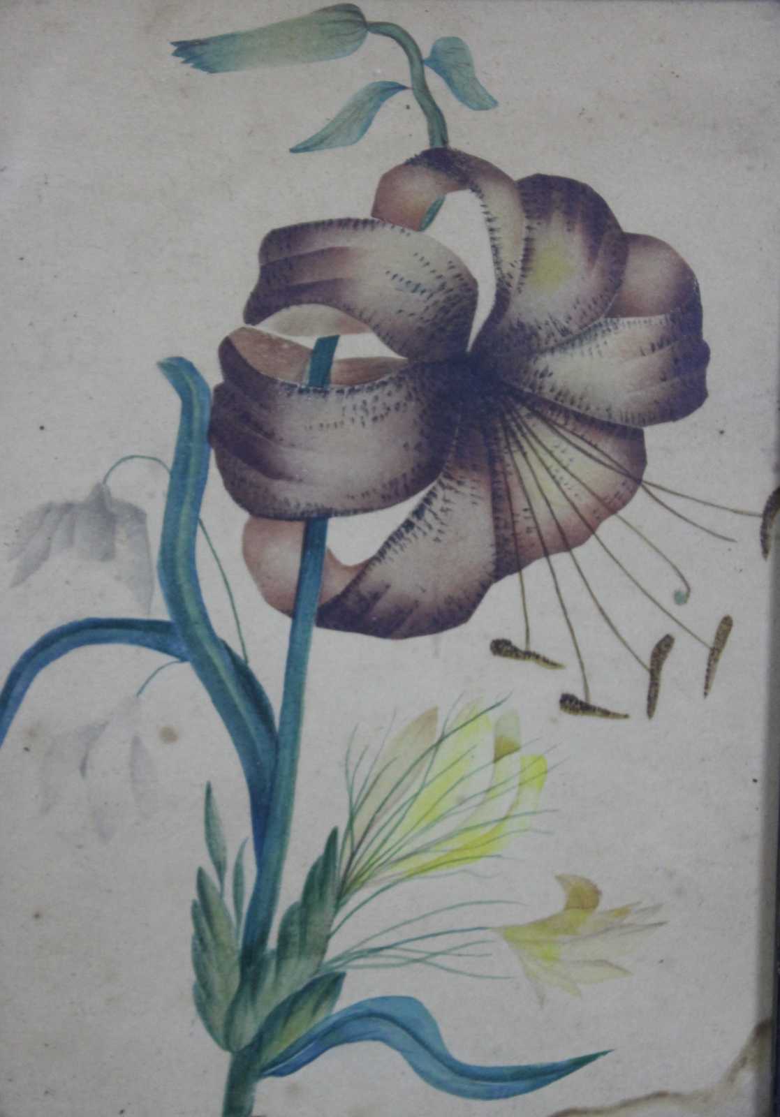 Antique botanical tiger lily watercolor painting in black wood frame.