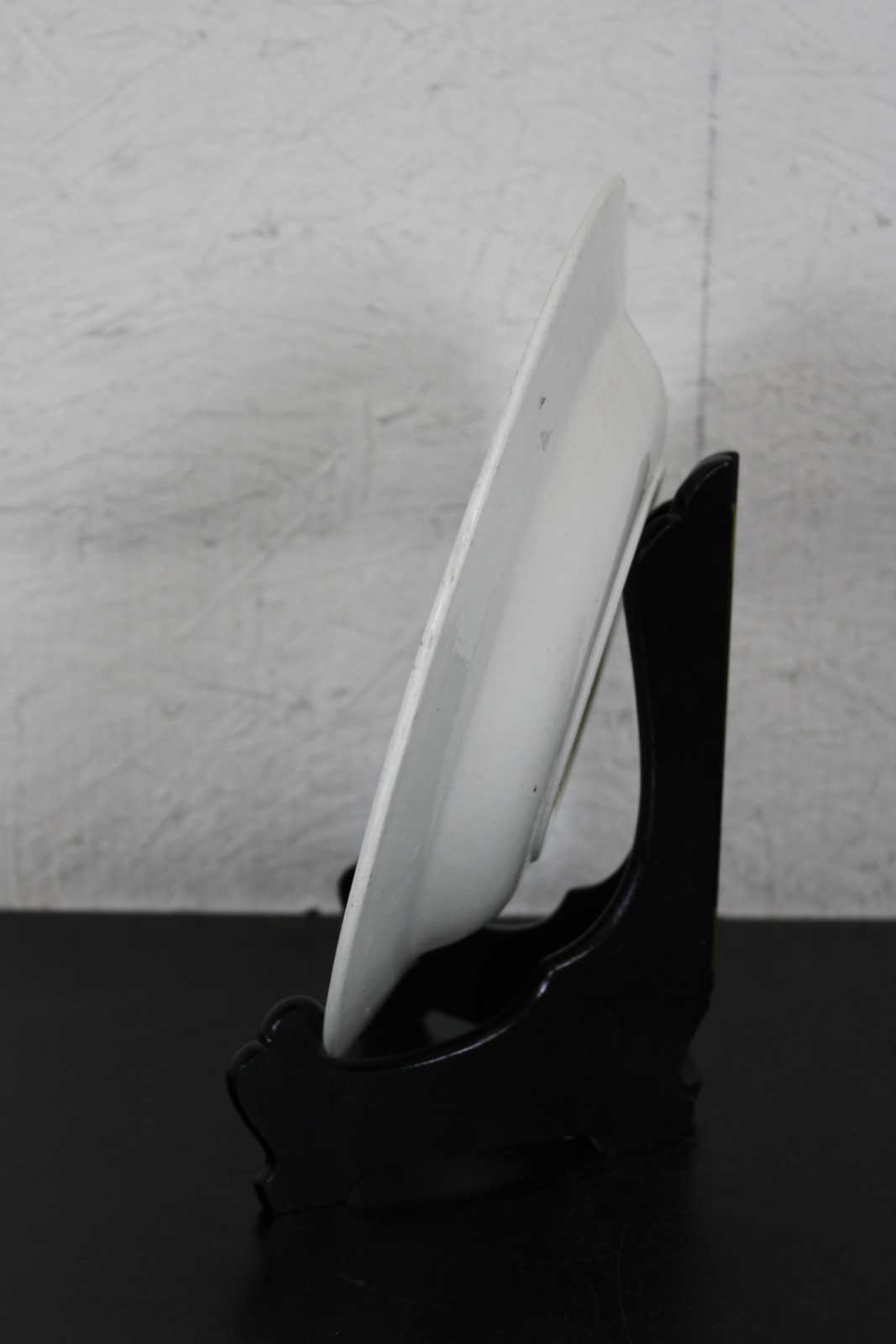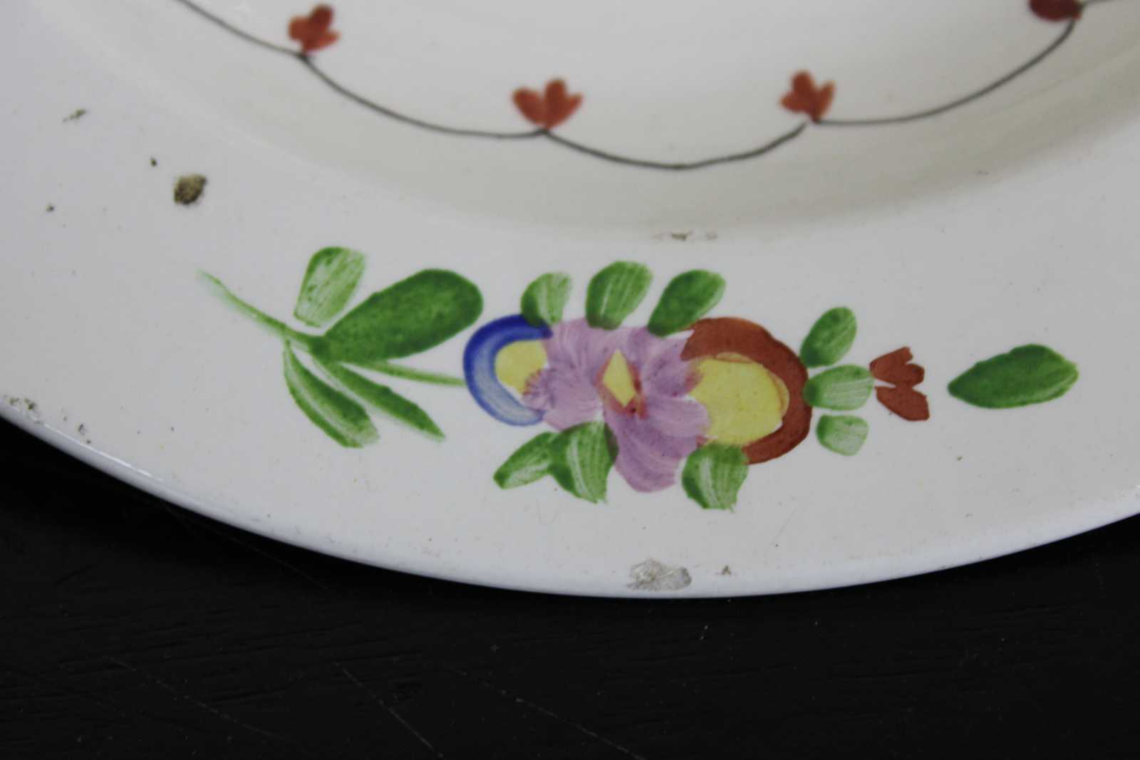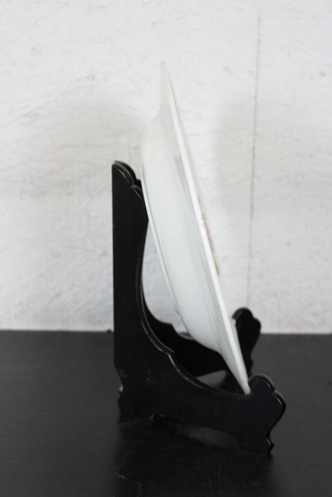 Antique hand painted folk art porcelain plate featuring pink roses and other flowers.