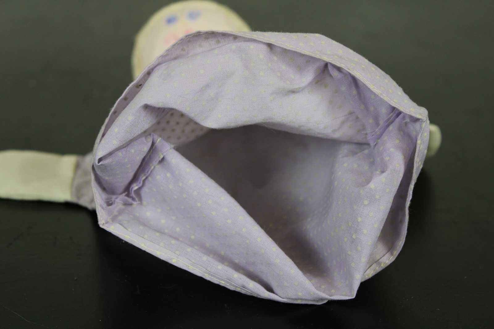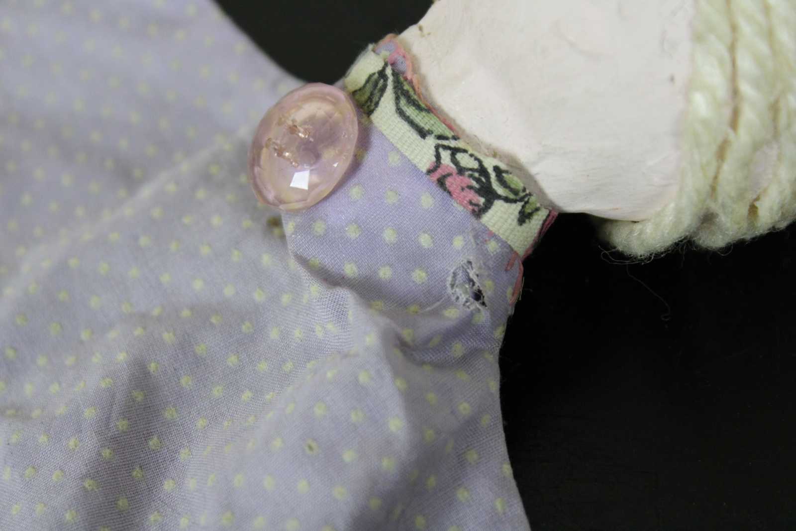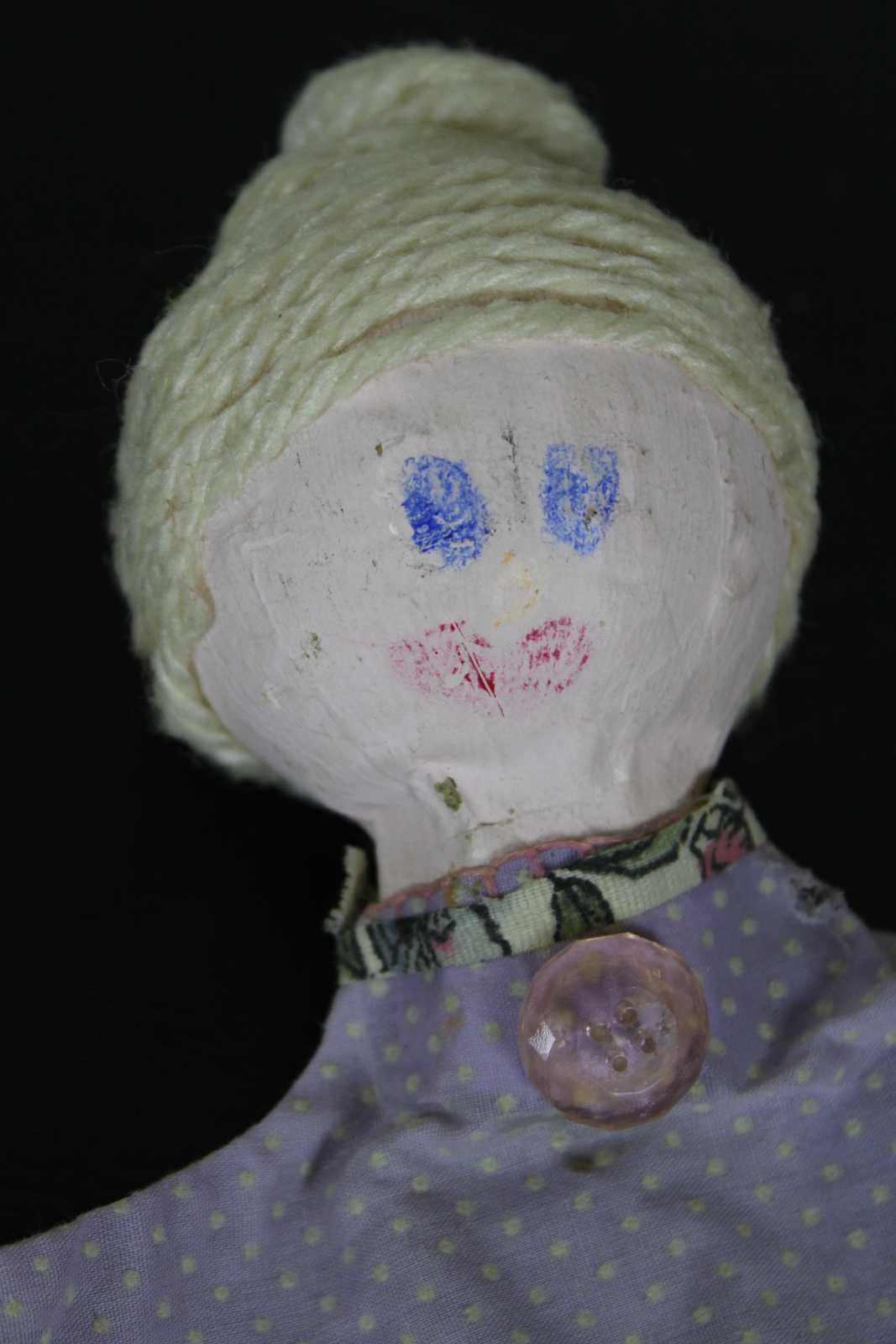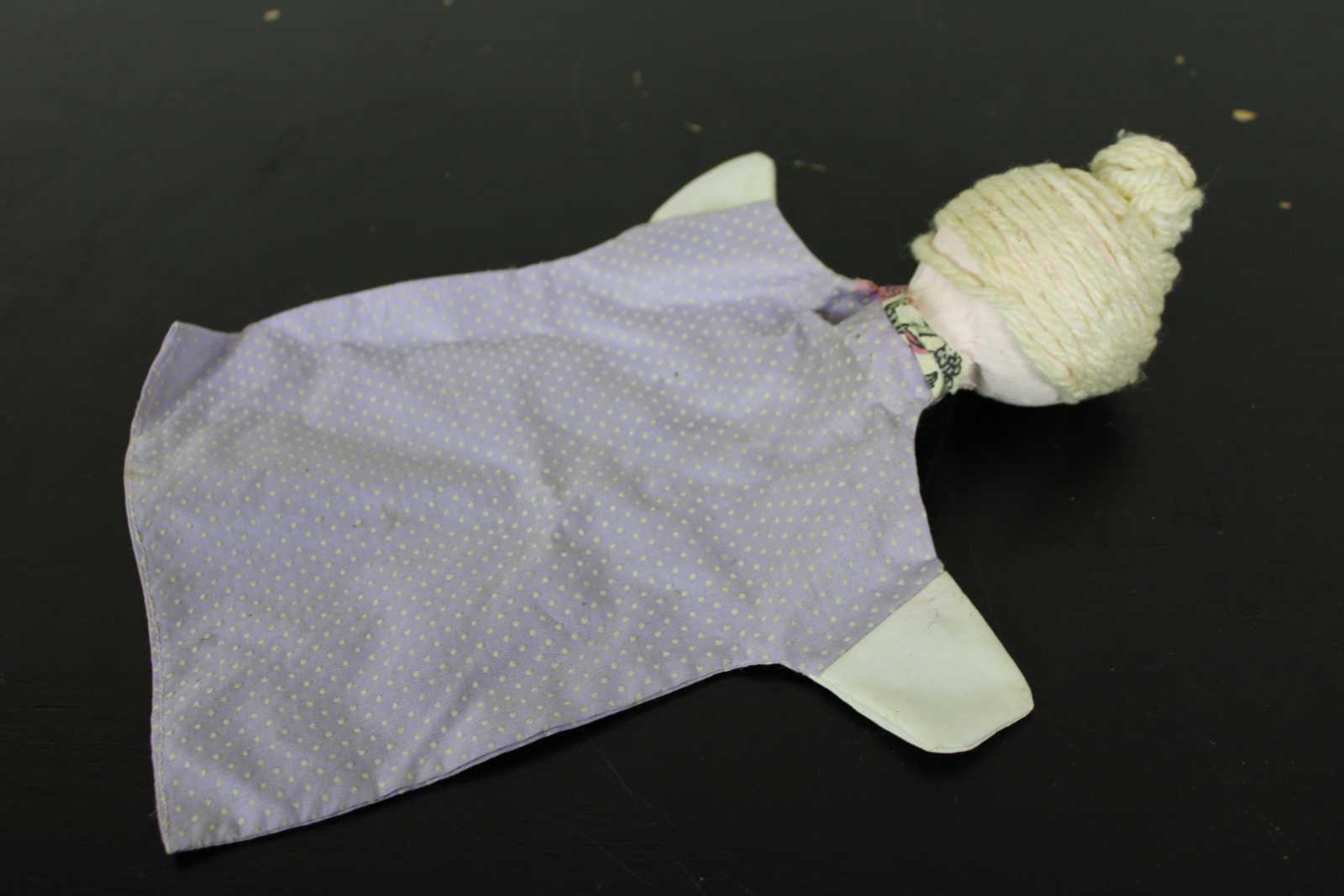 Vintage folk art hand puppet with yarn hair resembling the grandma / grandmother from Little Red Riding Hood.