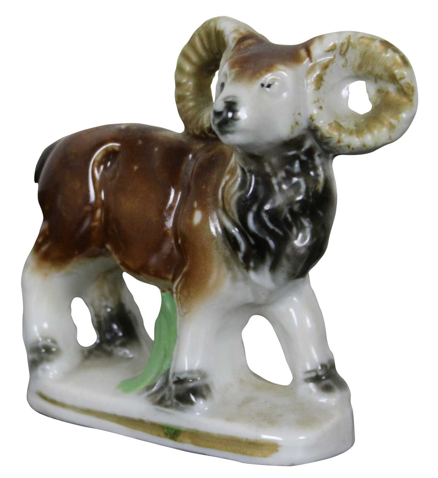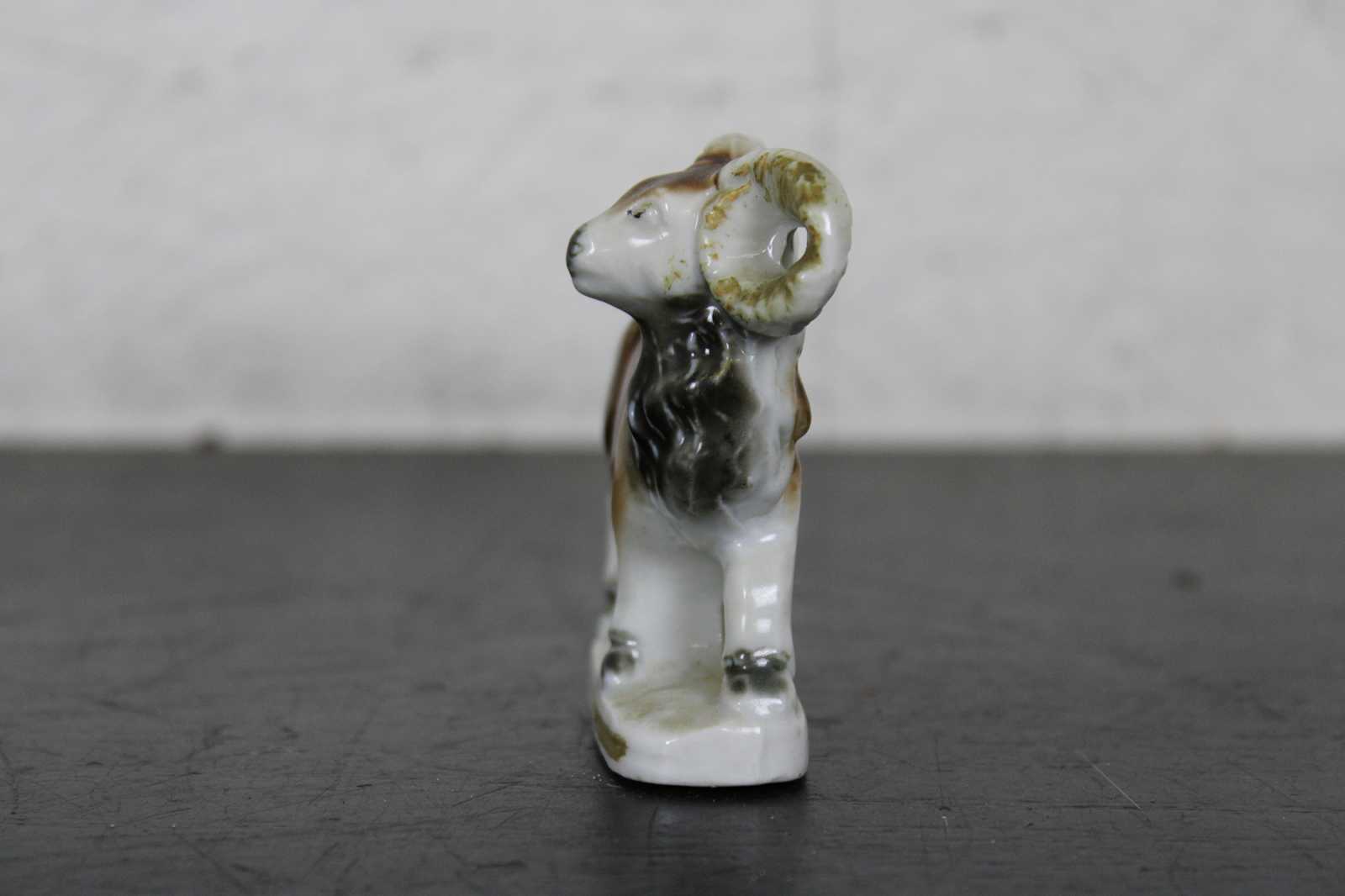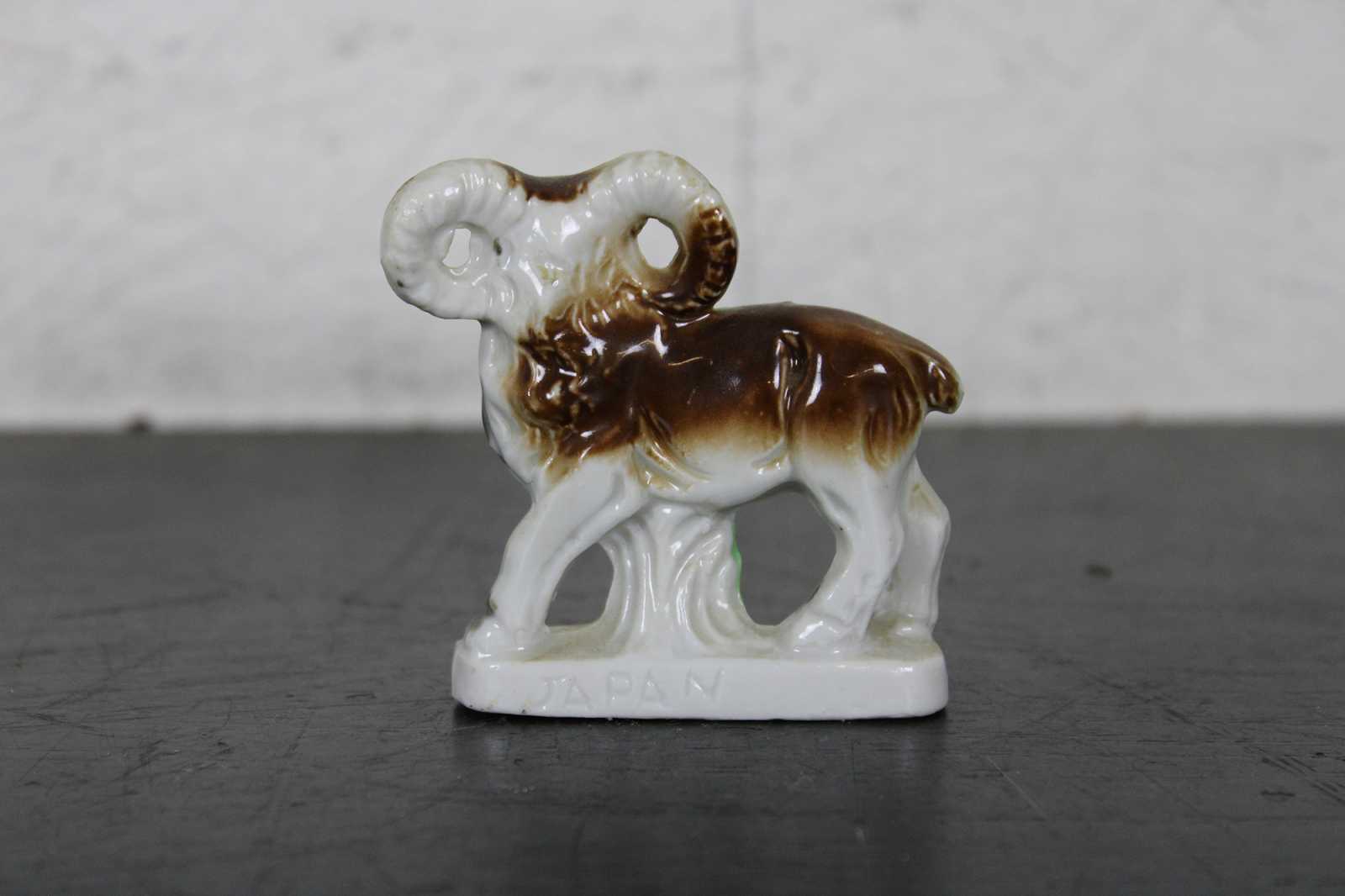 Vintage made in Japan porcelain goat or ram figurine in the style of antique Staffordshire.