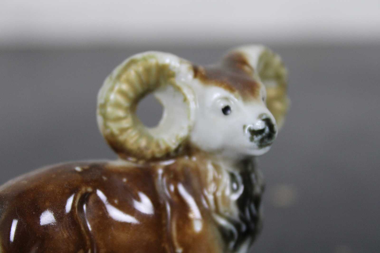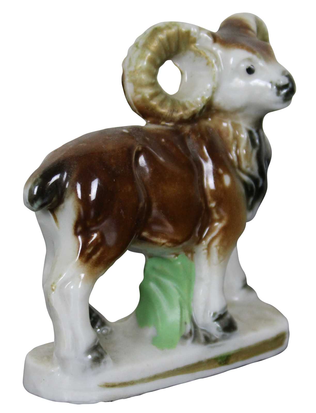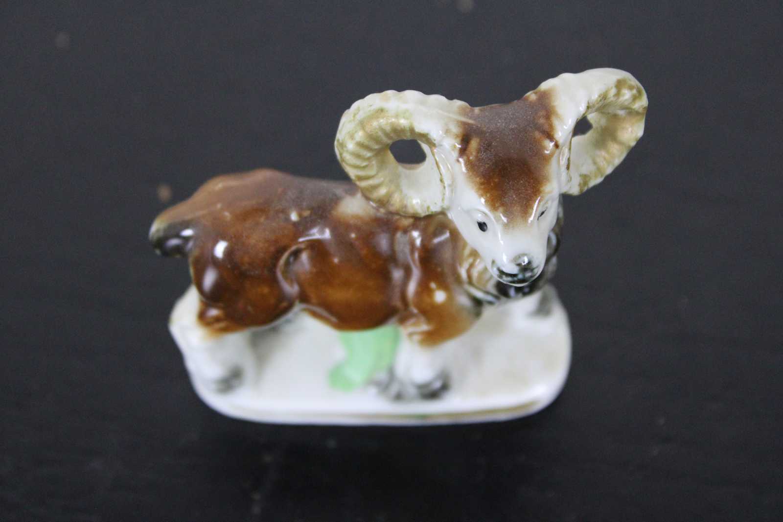 Vintage made in Japan porcelain goat or ram figurine in the style of antique Staffordshire.