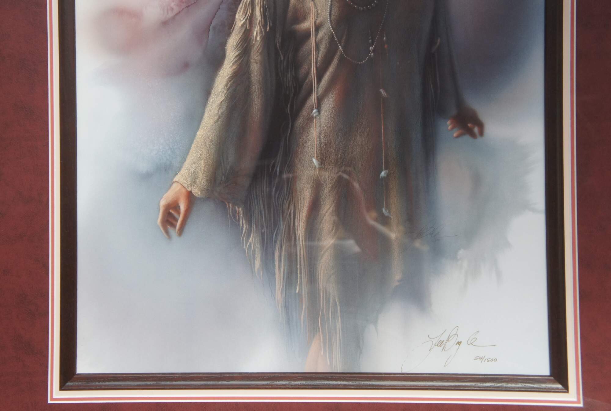 This numbered lithograph by artist Lee Bogle depicts a native american woman and is titled ‘Inner Peace’.