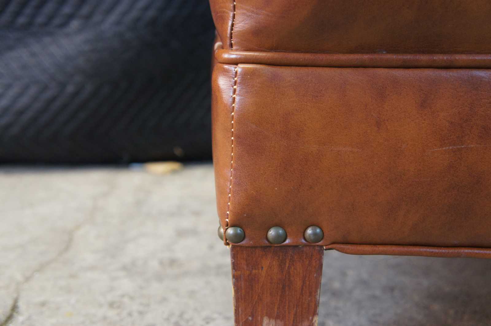 Retro light brown leather ottoman, circa 1960s. Rectangular form with square tapered legs.