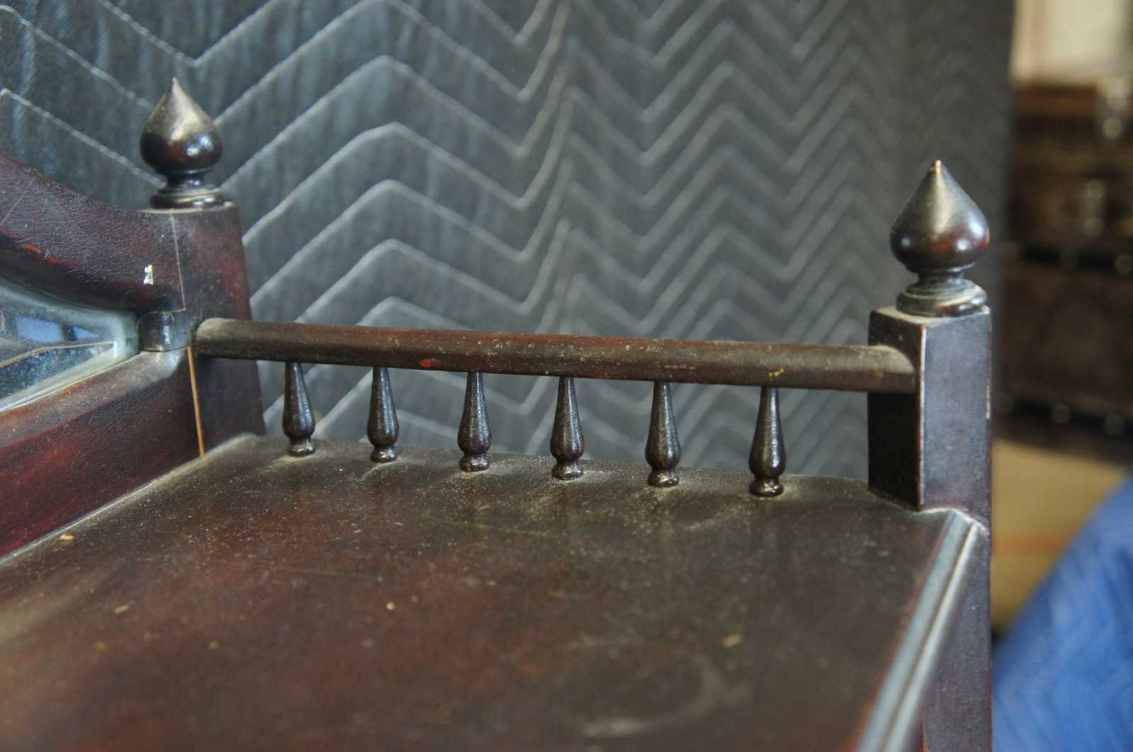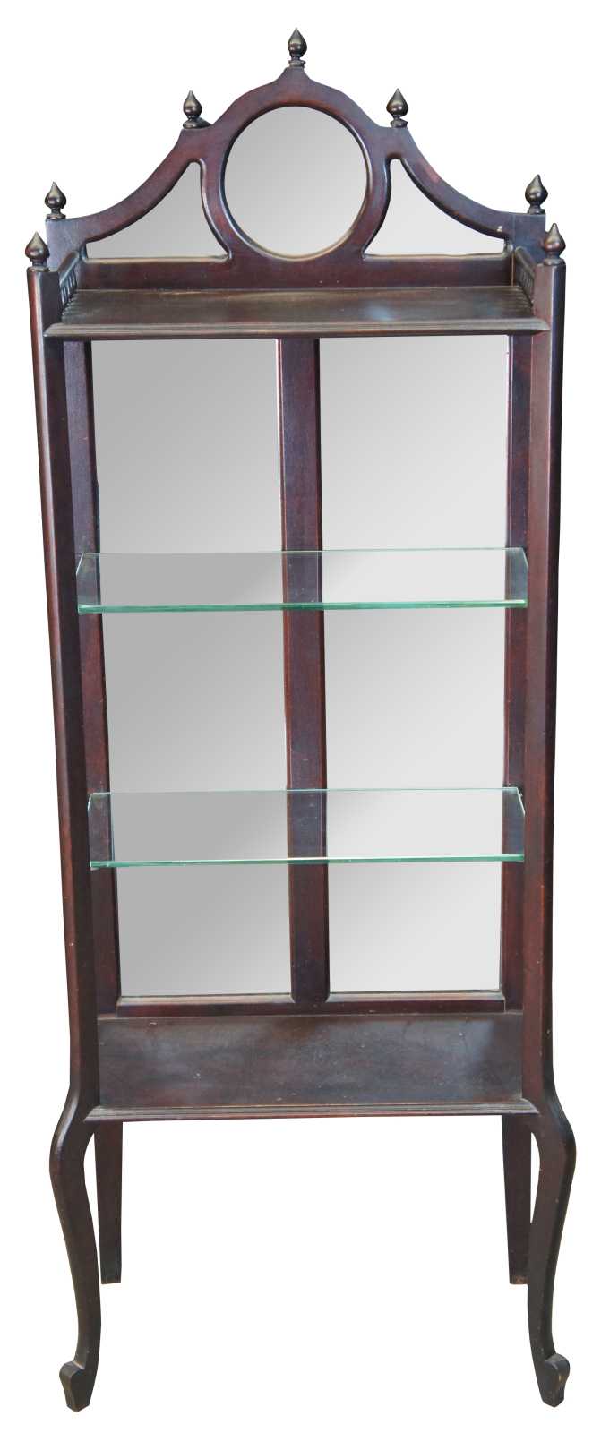Late Victorian Mahogany Etagere or Hall Stand. Features an arched gothic style back with finials and beveled mirrors. Includes two glass shelves.