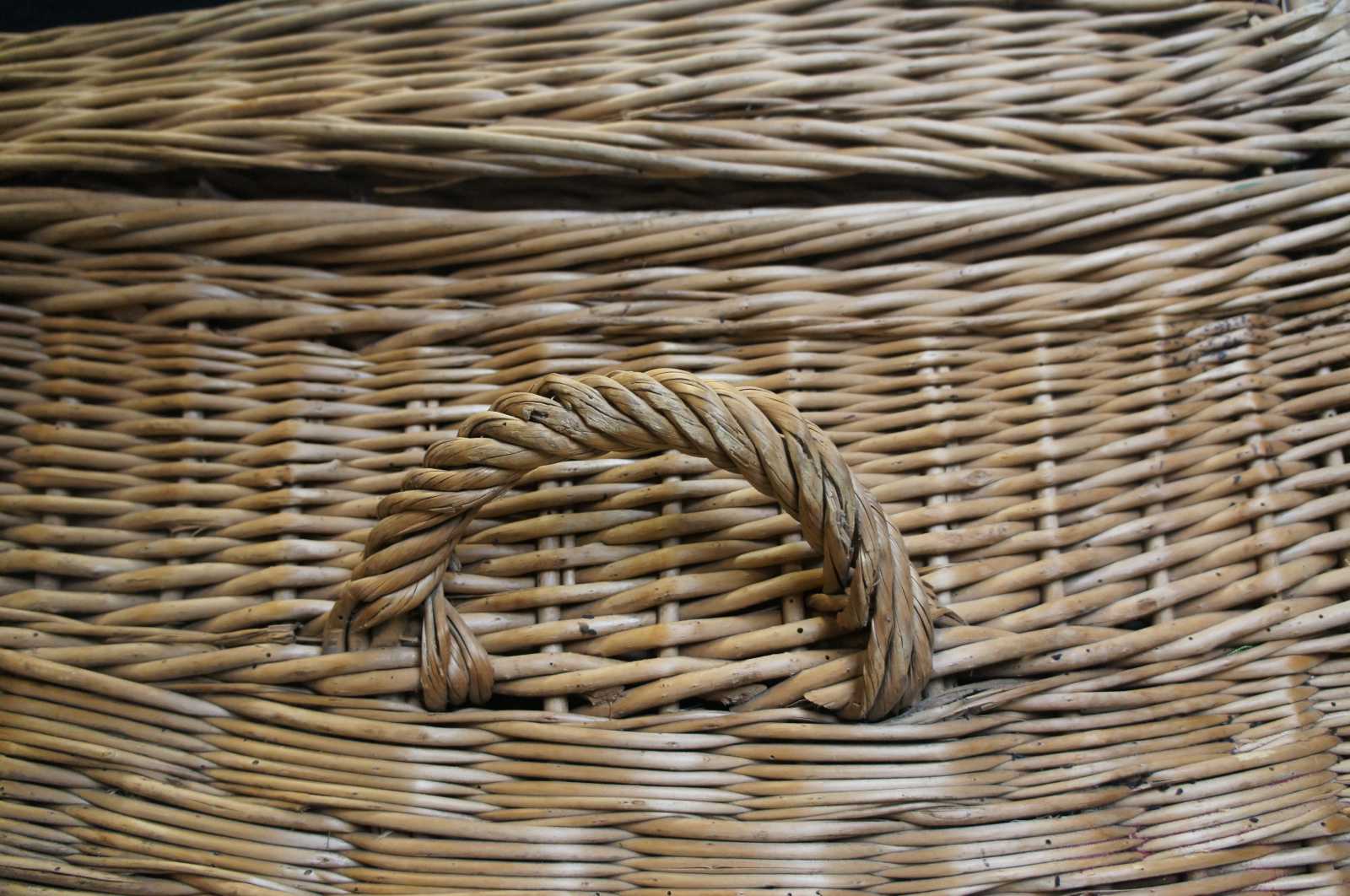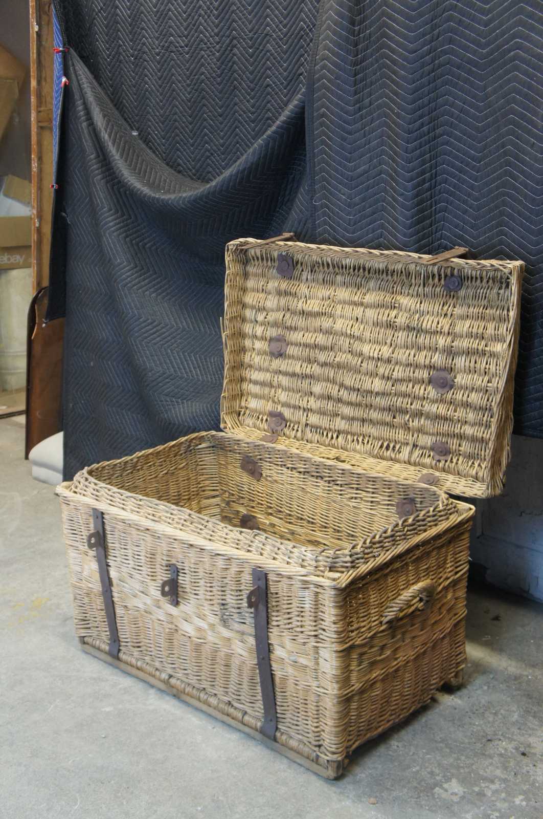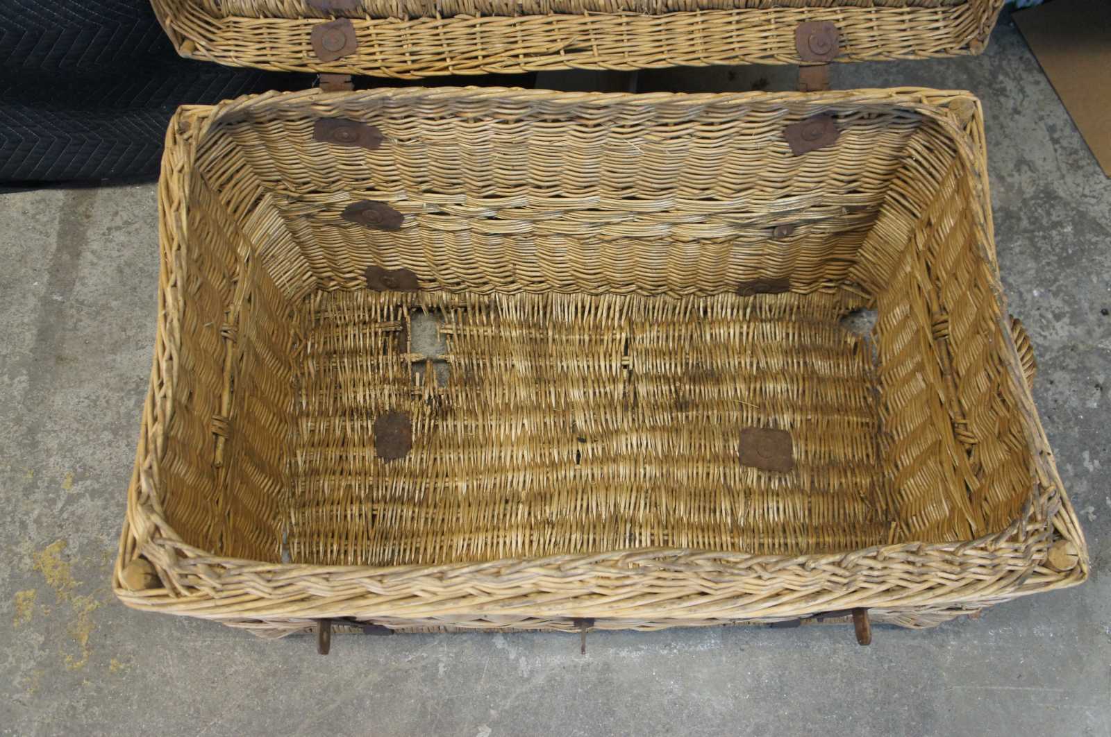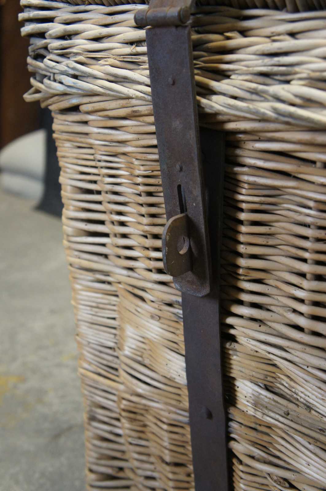 Early 20th century European wicker trunk. A nice oversized carrier with iron locking system. Features handles on each side. Great for use as a hamper, table or accent piece.