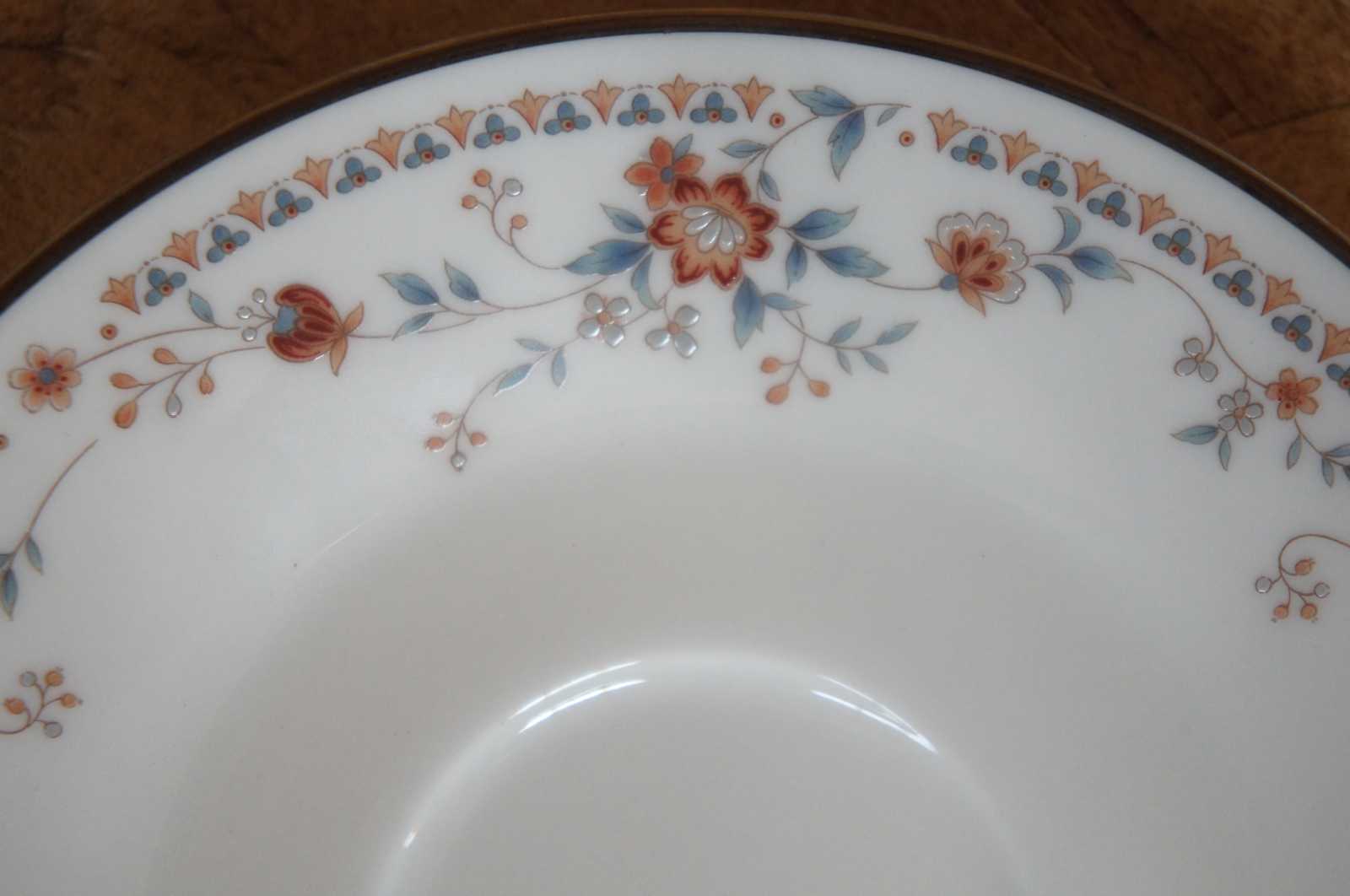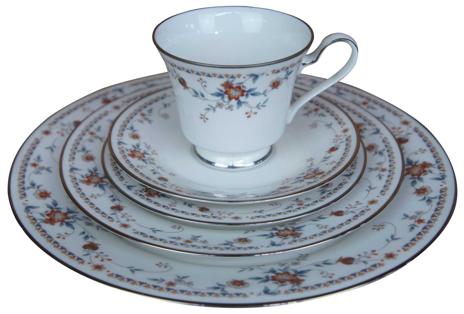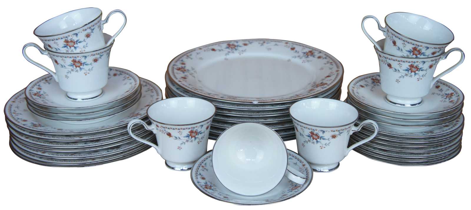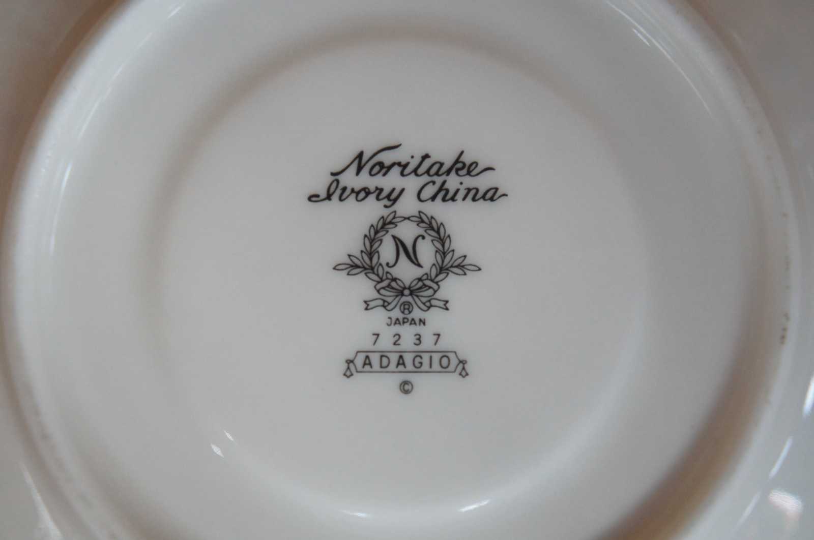 35 Pieces of Adagio by Noritake, circa 1978-1994. Victorian design with floral sprays along rim, Ivory finish.