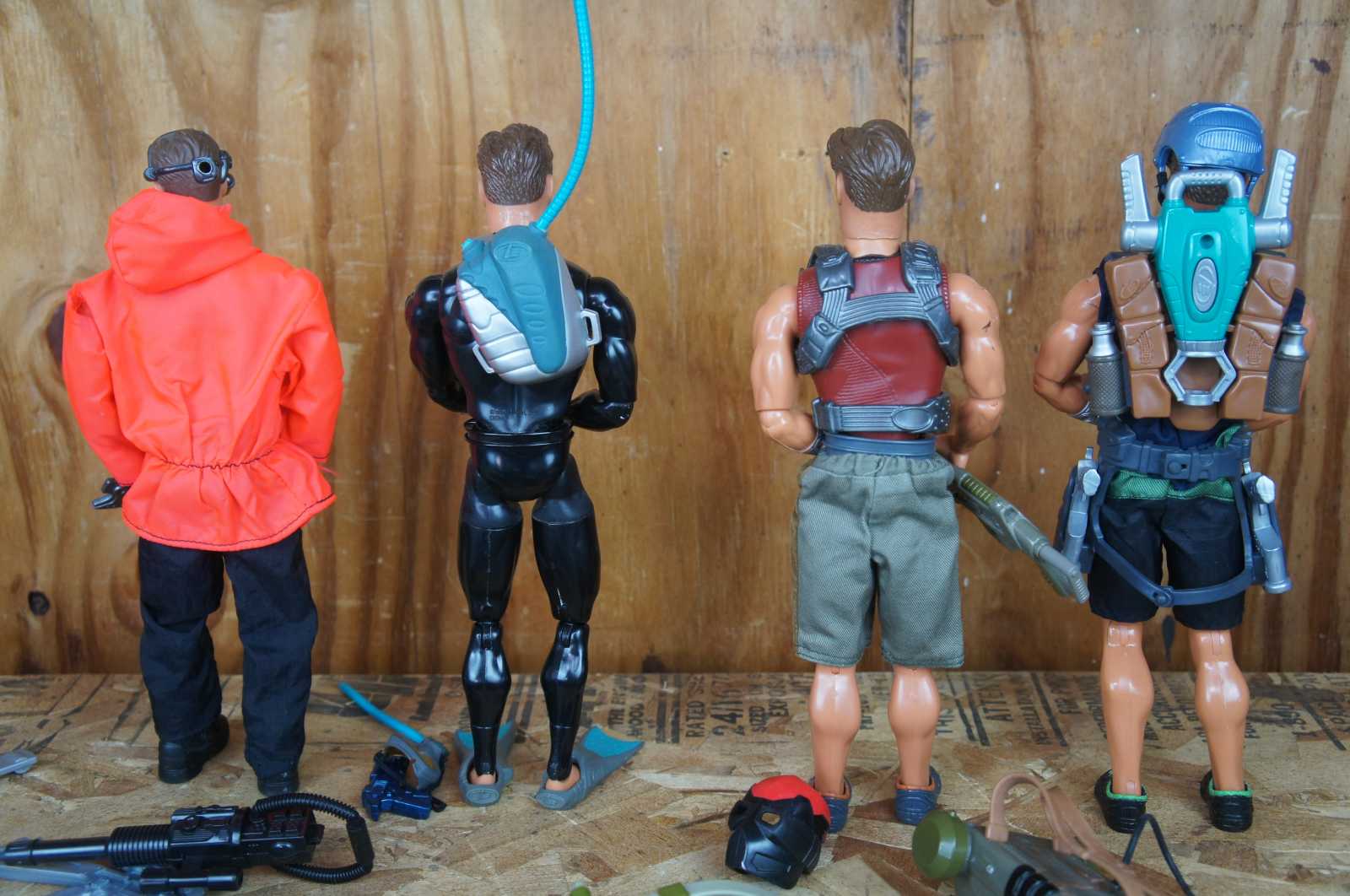 Lot of 4 Max Steel Figures + Accessories. Includes Artic explorer with sled, Scuba, Skateboard and jetpack.