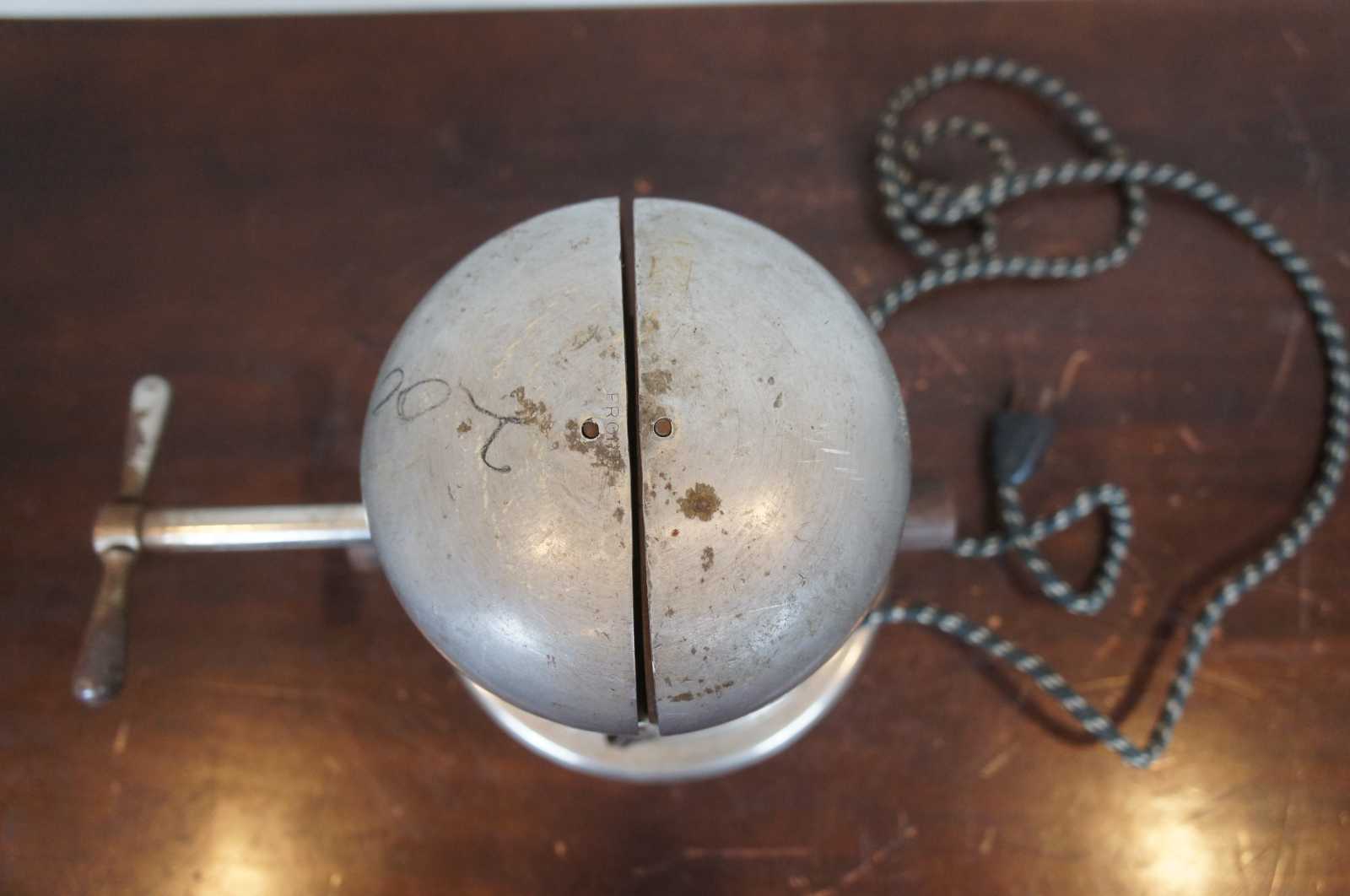 A fine and collectible working electric (heated) hat stretcher. Made of aluminum featuring an adjustable form for molding. Circa 1930s.