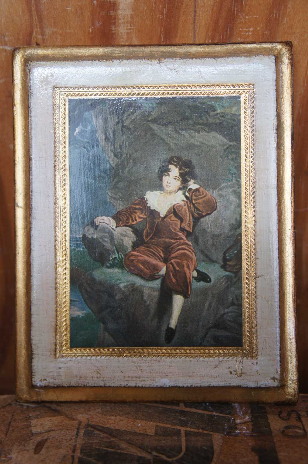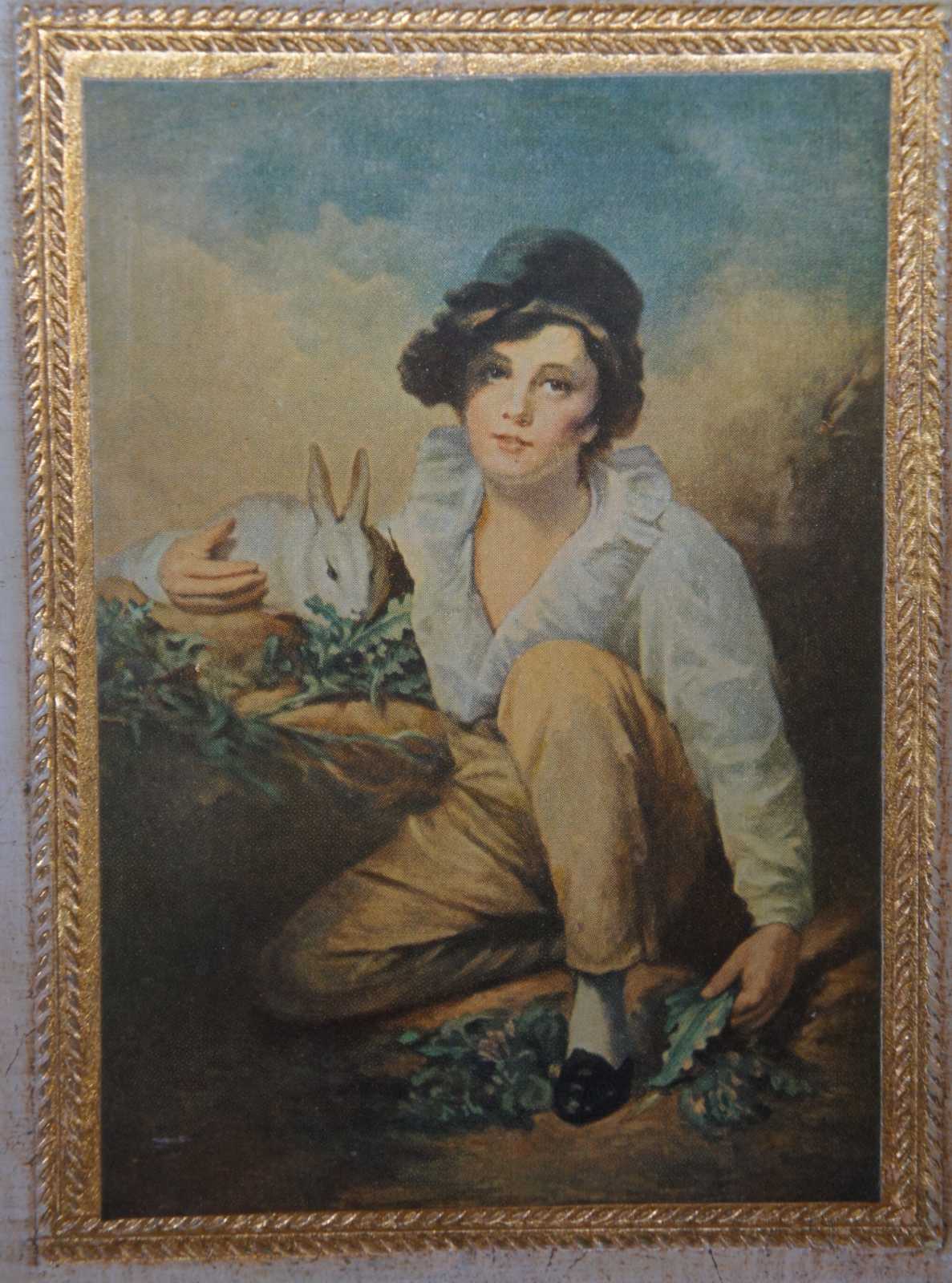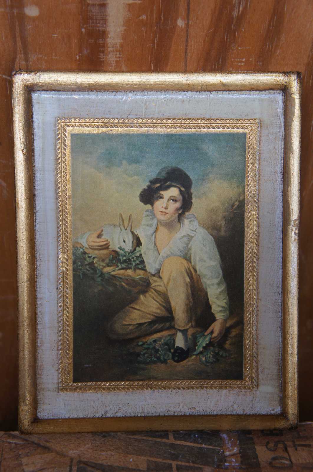 Two mid century prints featuring Victorian boys by Sir Henry Raeburn named Boy and Rabbit.