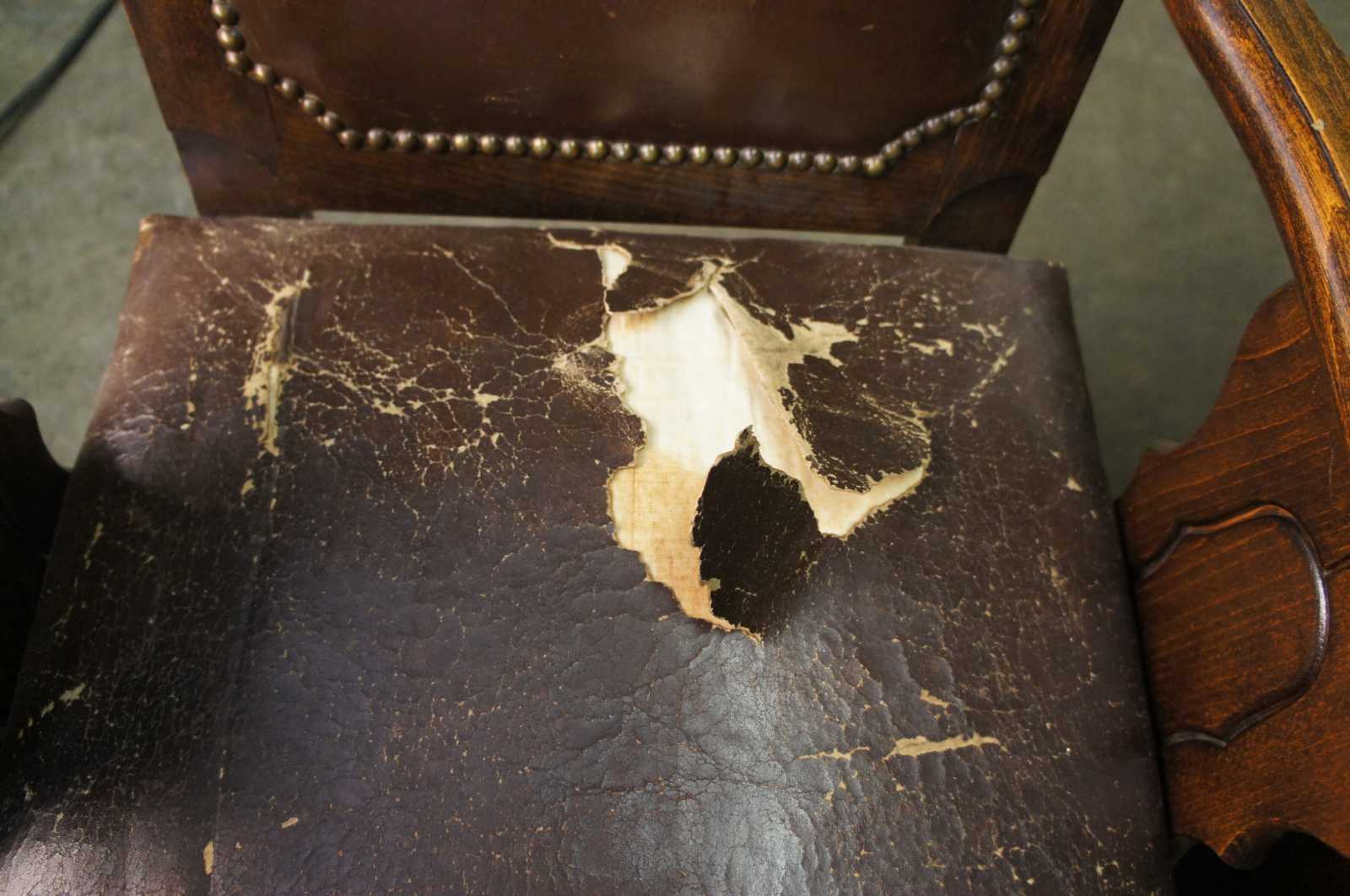 Very Good Structurally. Upholstery is worn with distressing, torn and crackling areas.