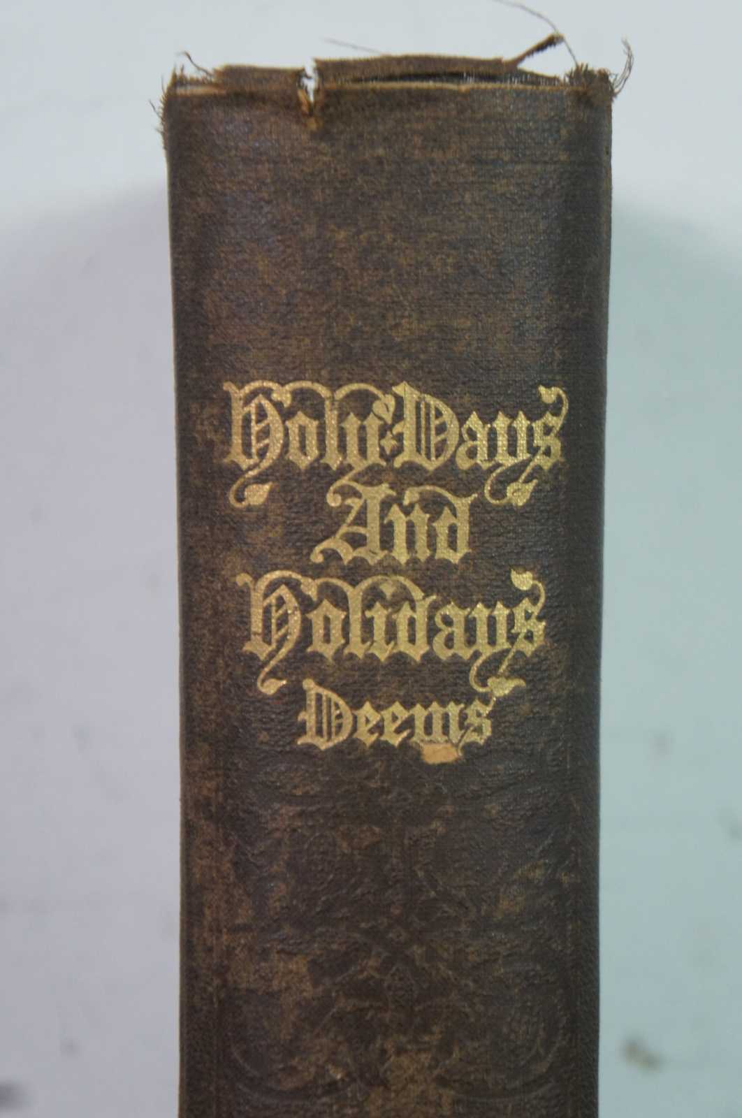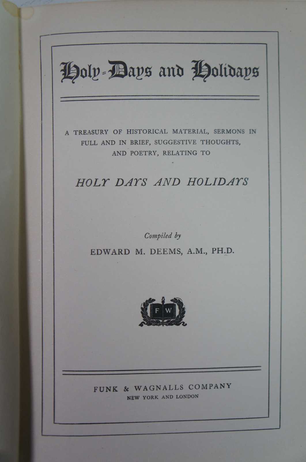Antique leather bound hard cover copy of “Holy Days and Holidays: A Treasury of Historical Material, Sermons in full and in Brief, Suggestive Thoughts, and Poetry relating to Holy Days and Holidays” compiled by Edward M. Deems, published by Funk & Wagnalls Company, 1902.