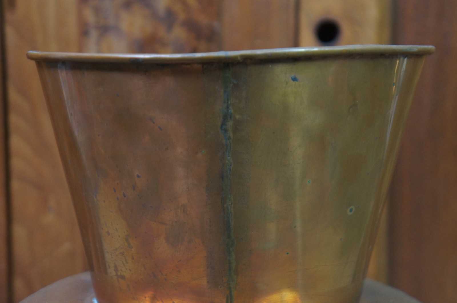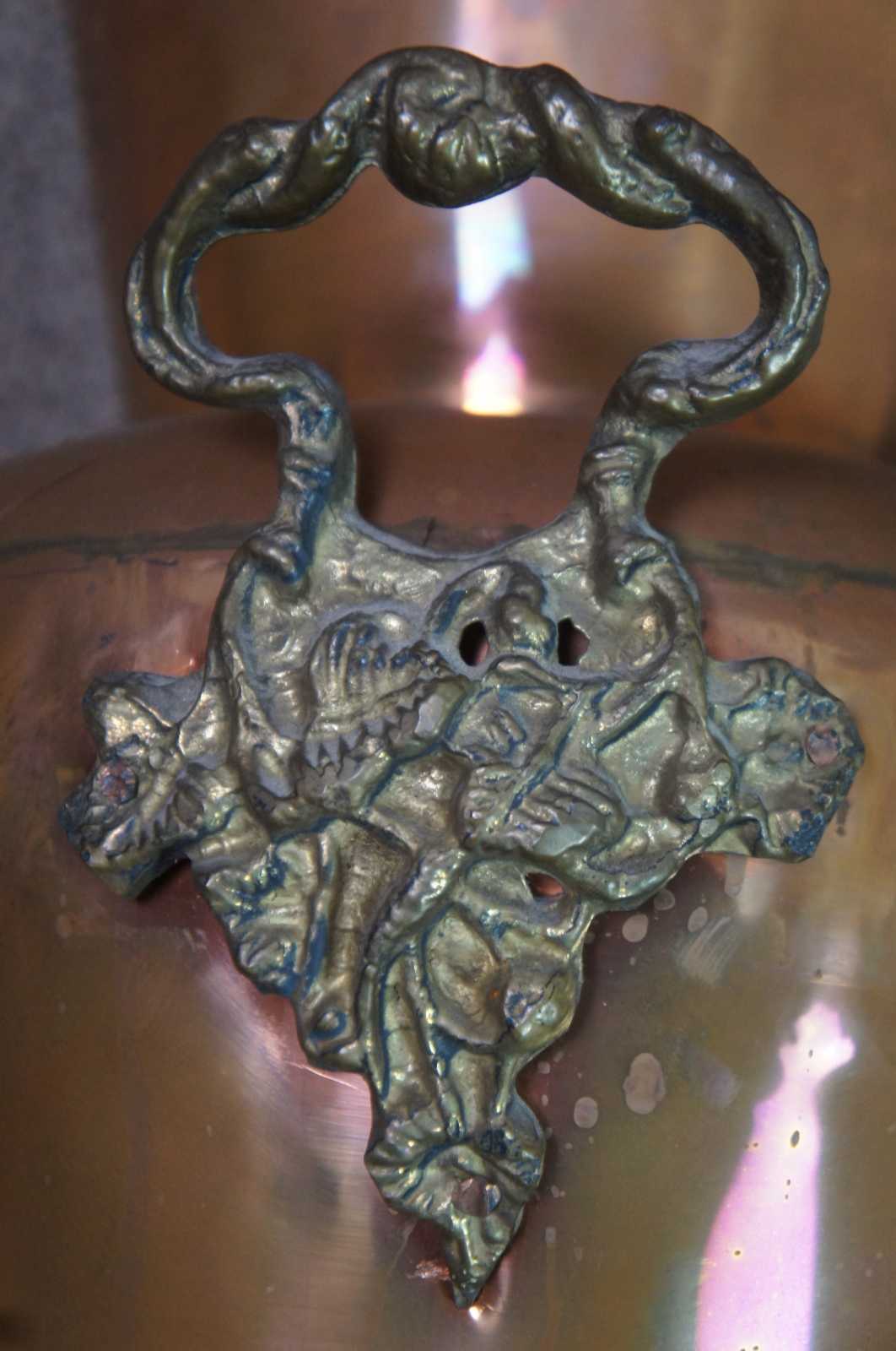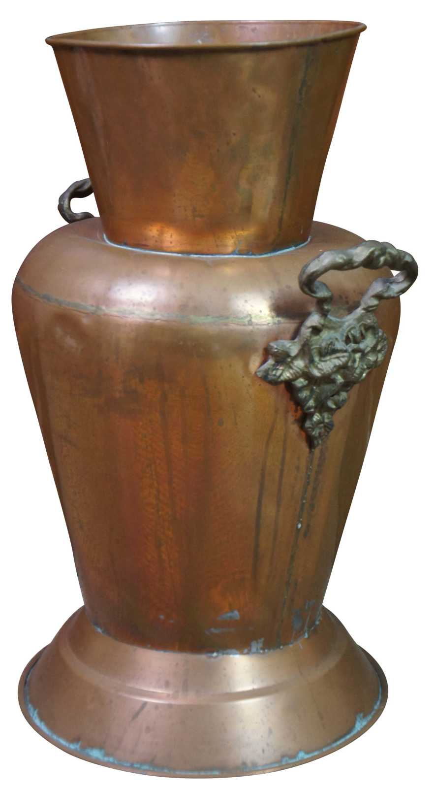 Antique Victorian dovetailed copper floor vase, urn or planter with molded brass handles.