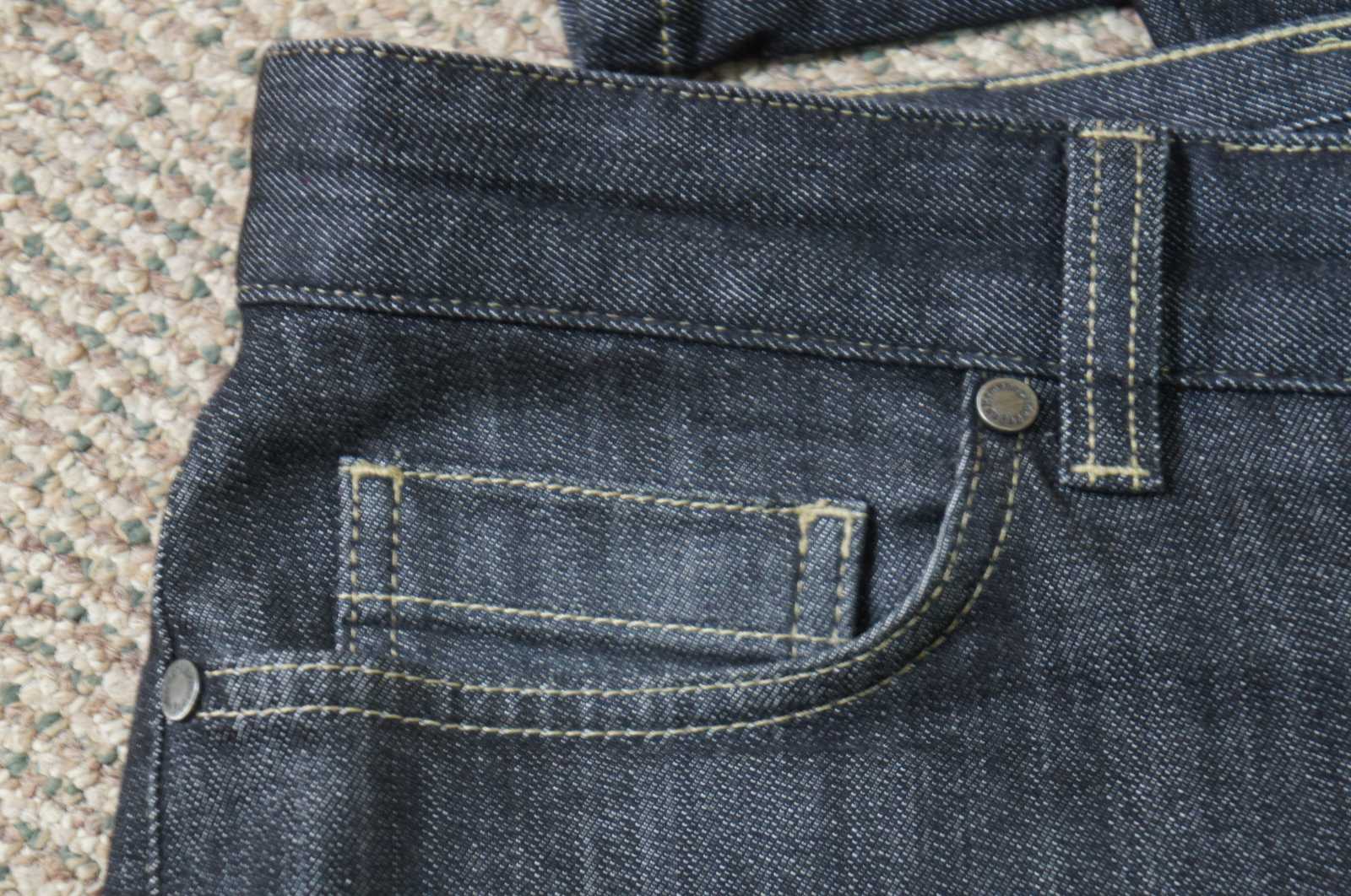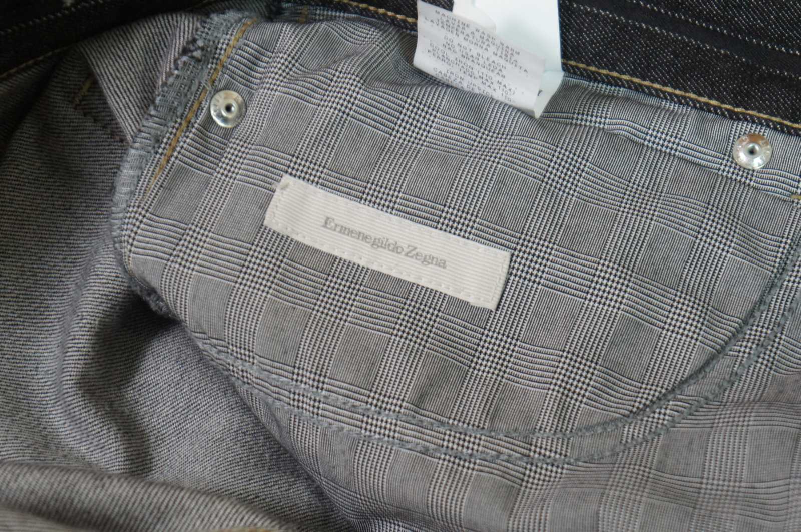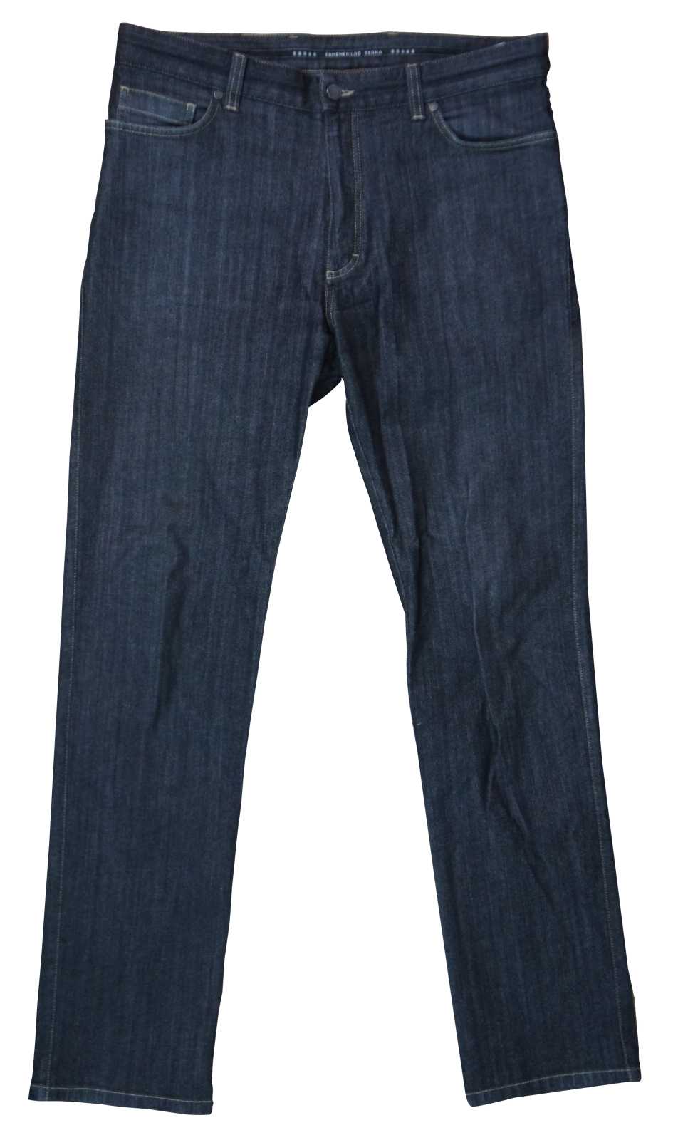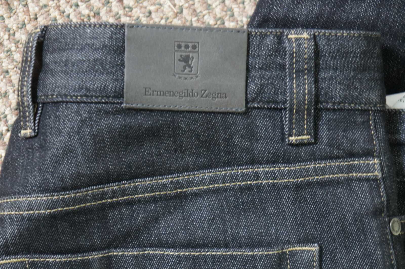 Ermenegildo Zegna men’s, straight leg, dark wash denim jeans.
