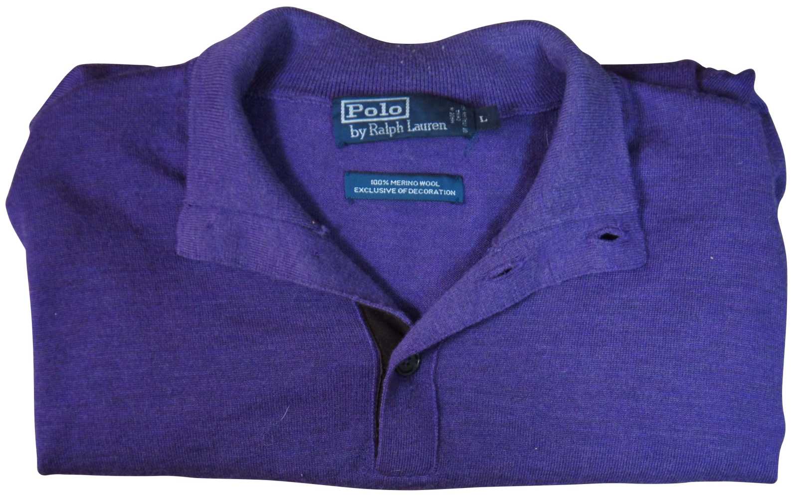 Polo Ralph Lauren men’s purple merino wool pull over sweater with button collar.