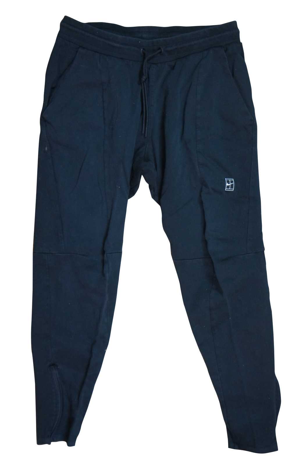 Nike Court cotton men’s black running pant with tapered leg, ankle zip and standard hip pockets.