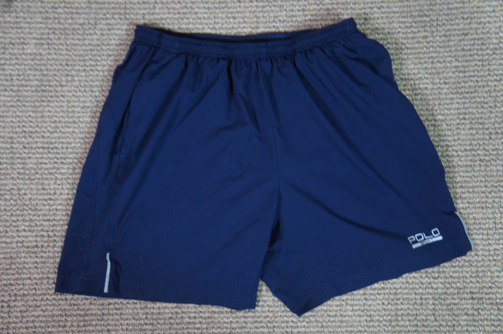 Set of three Polo Sport by Ralph Lauren, men’s athletic shorts in black, navy, and blue.