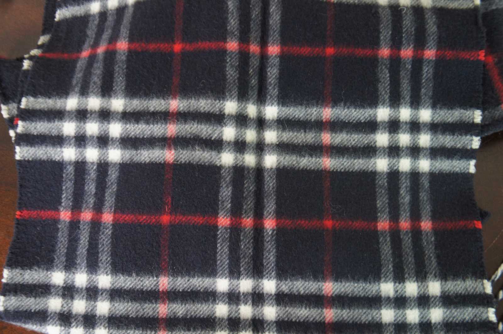 Burberry 100% cashmere scarf in navy blue, white and red plaid. Made in Scotland.