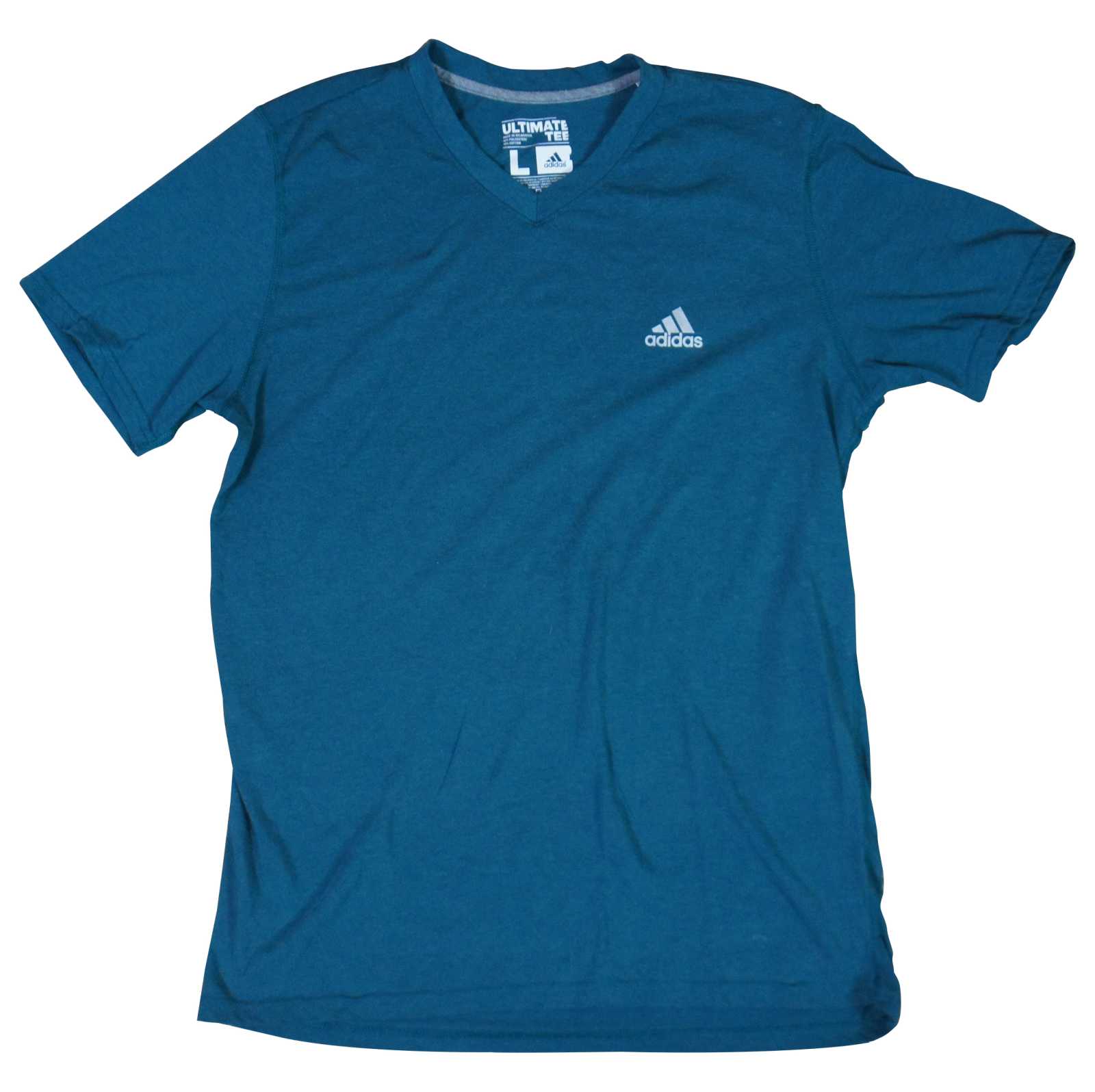 Set of 2 Adidas Climalite Ultimate Tee men’s short sleeve t-shirts in blue and teal.