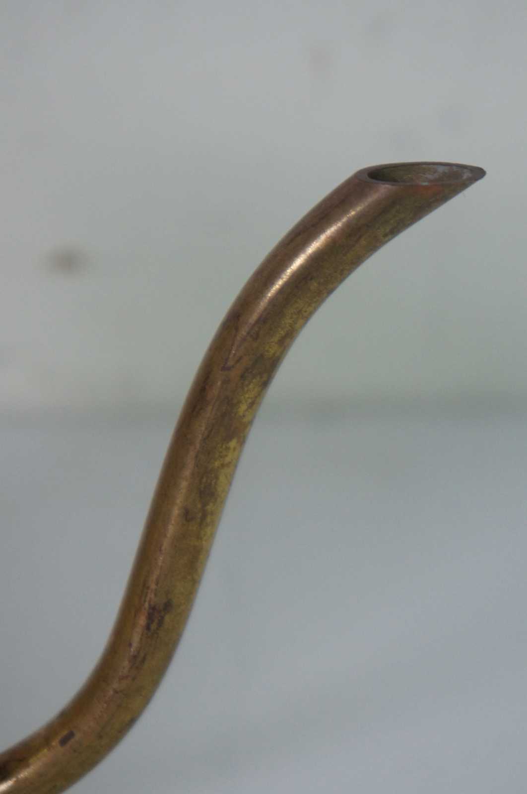 Vintage FTDA 1986 brass watering can featuring a gooseneck spout and a design of sprouting daisies, made in Holland by Nijhof-Zevenaar.