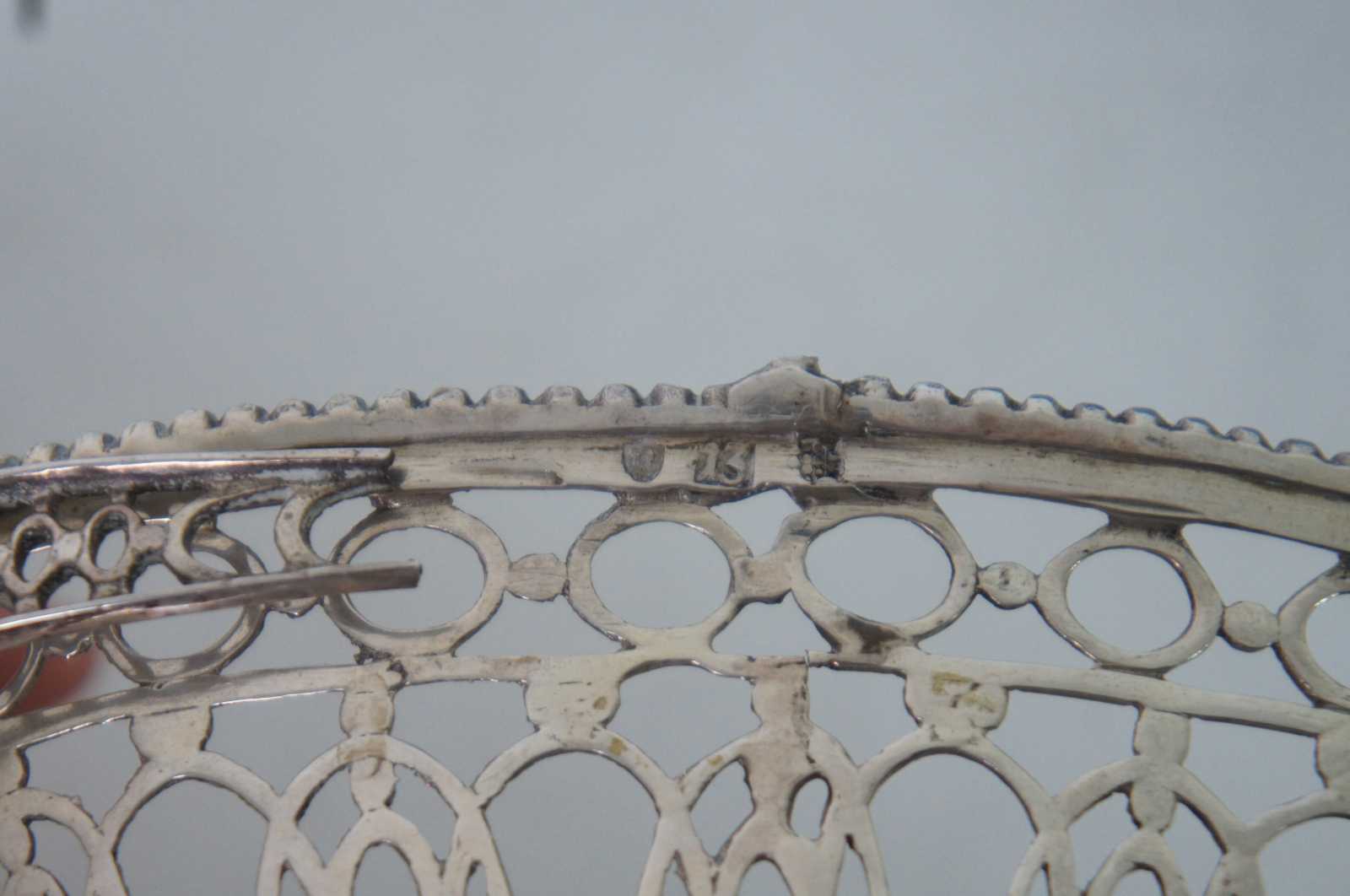 Antique pierced / reticualted sterling silver 925, oval basket / bowl / compote / candy dish with cobalt blue glass insert and handle.
