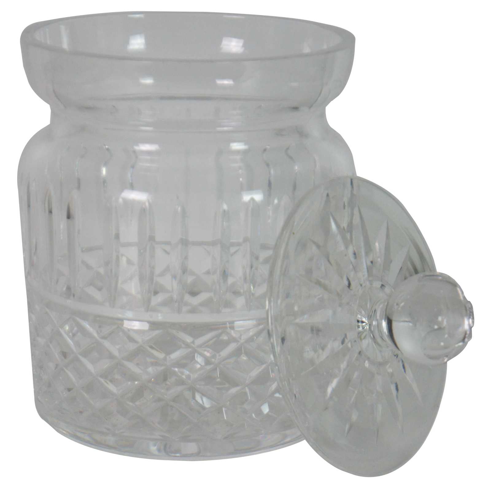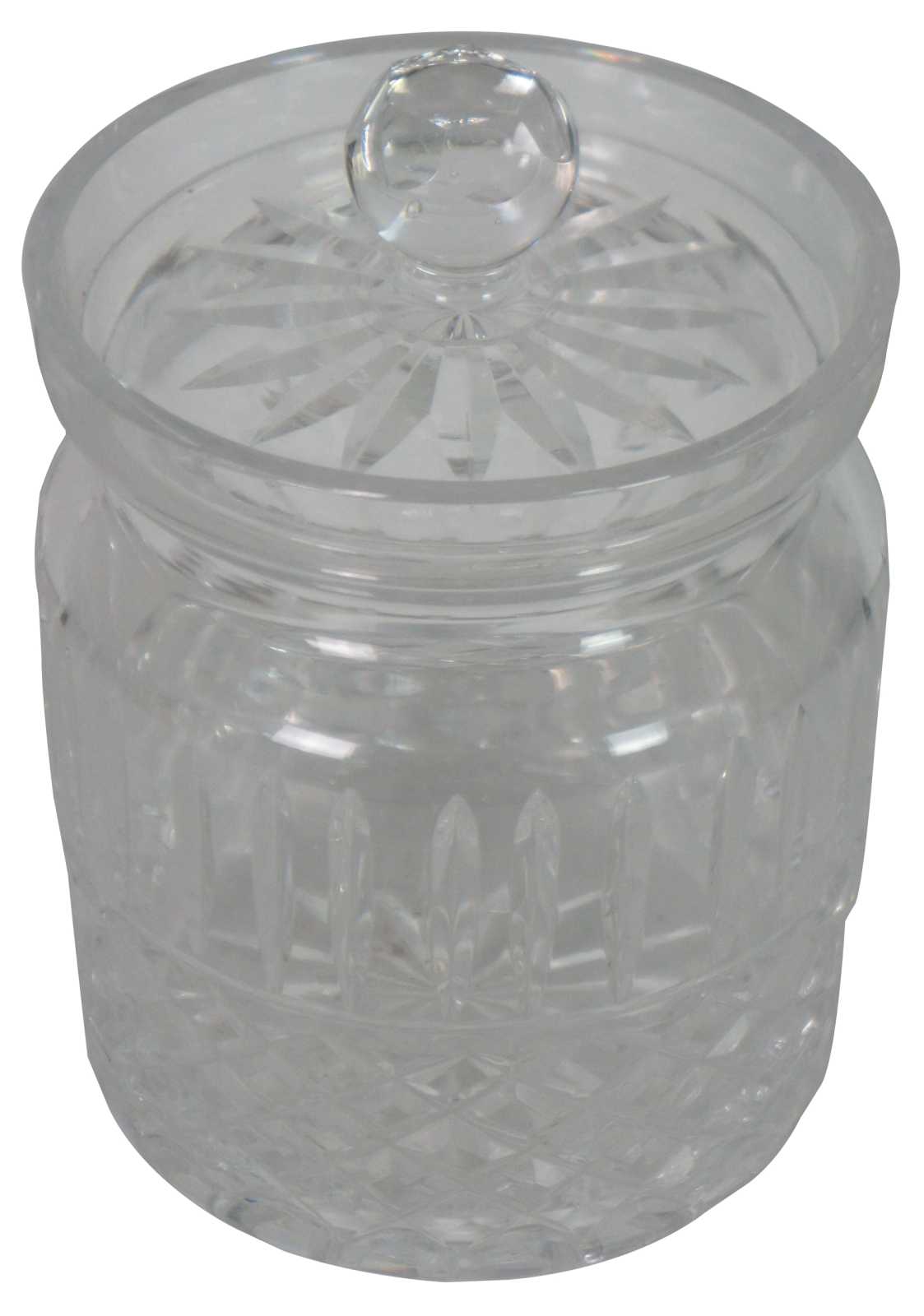 Vintage Waterford crystal Maeve pattern biscuit jar with recessed lid.