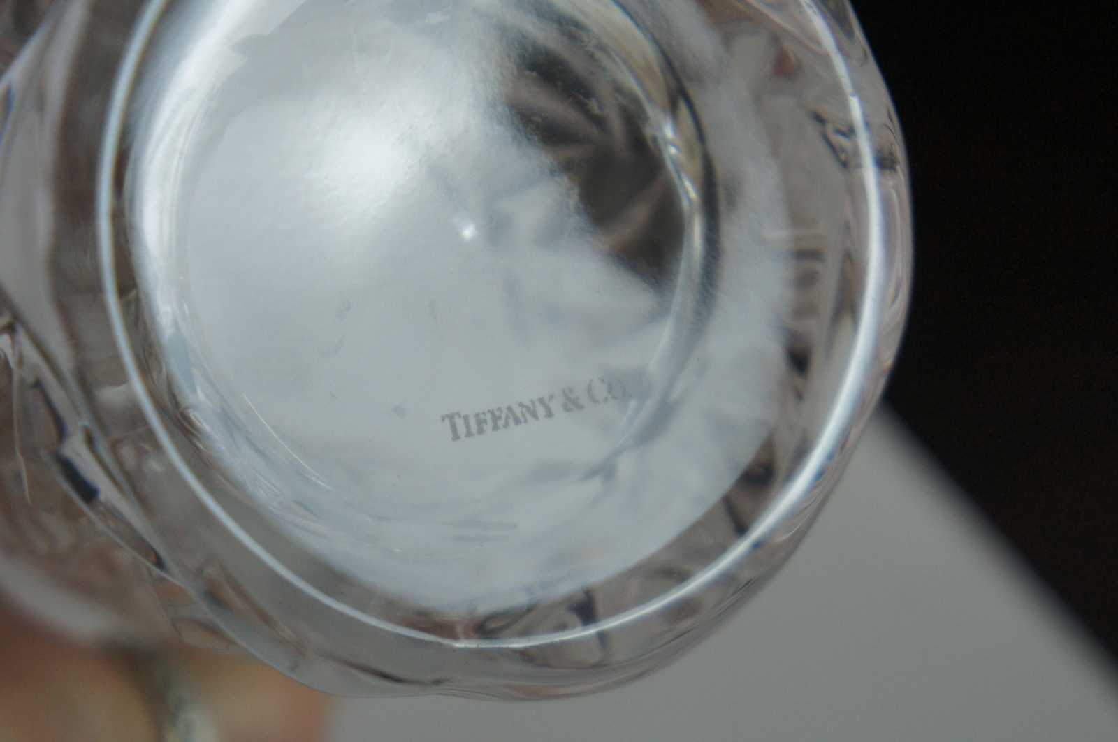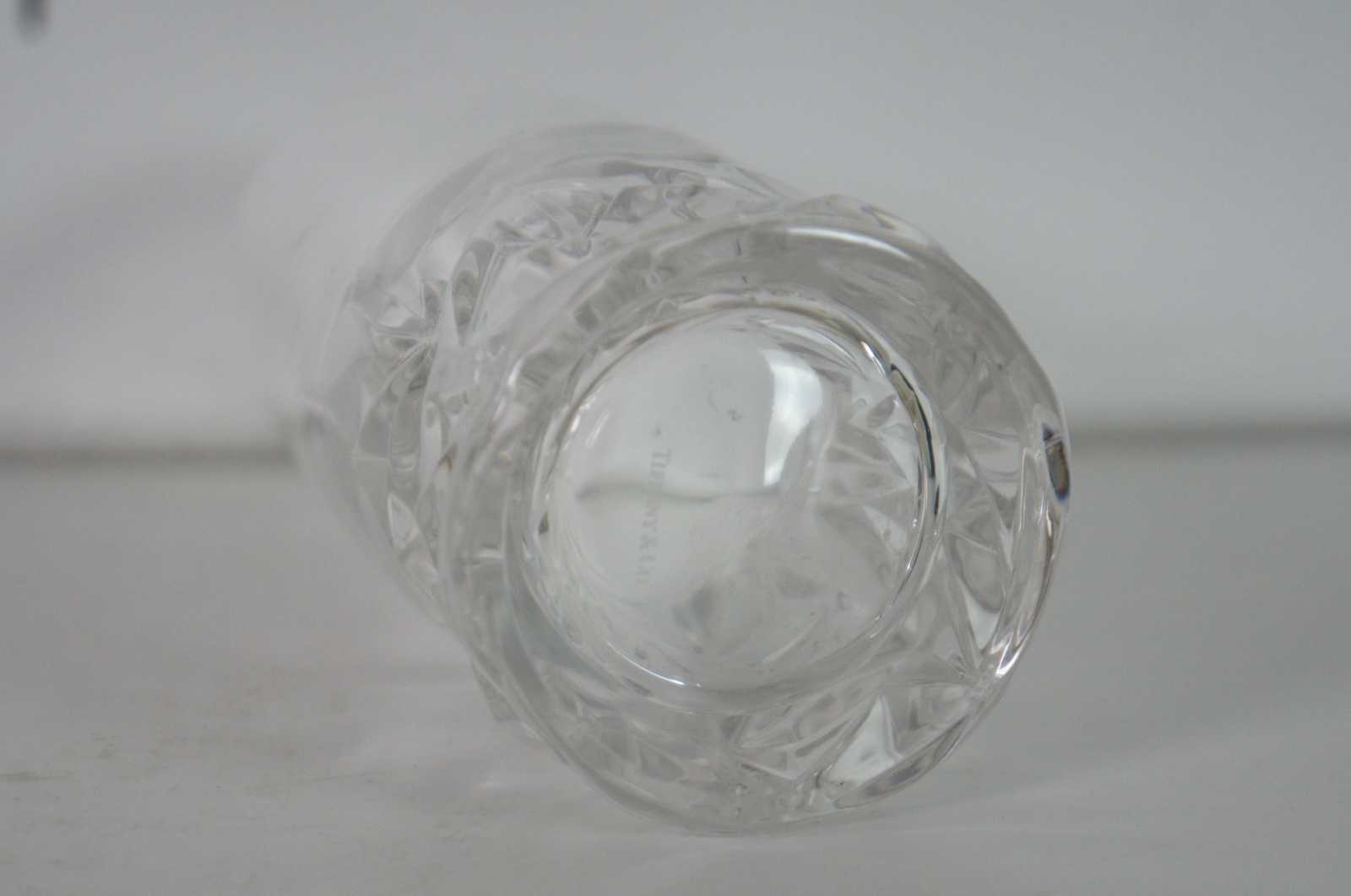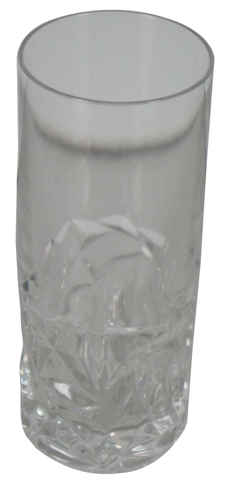 One Tiffany & Co Rock Cut crystal tumbler or highball glass with rough tumbled crystal texture at the base and smooth sides.