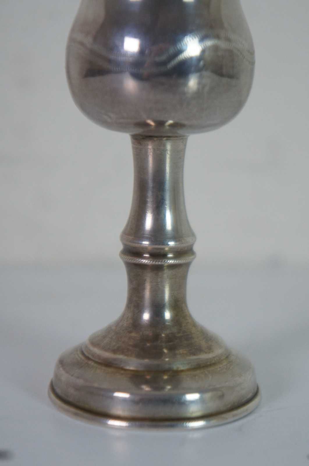 Antique 1905 sterling silver goblet shaped kiddush cup with etched geometric designs, made by Jacob Fenigstein (Birmingham silversmiths circa 1905-1913).
