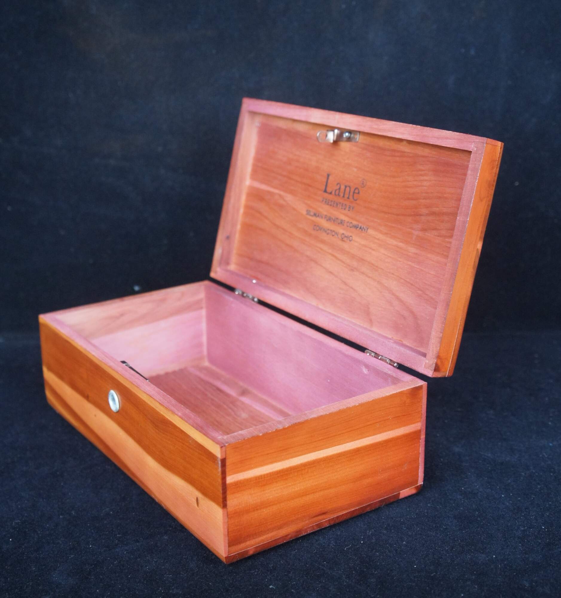 Vintage small cedar chest by Lane with working key can be used to store jewelry or keepsakes.