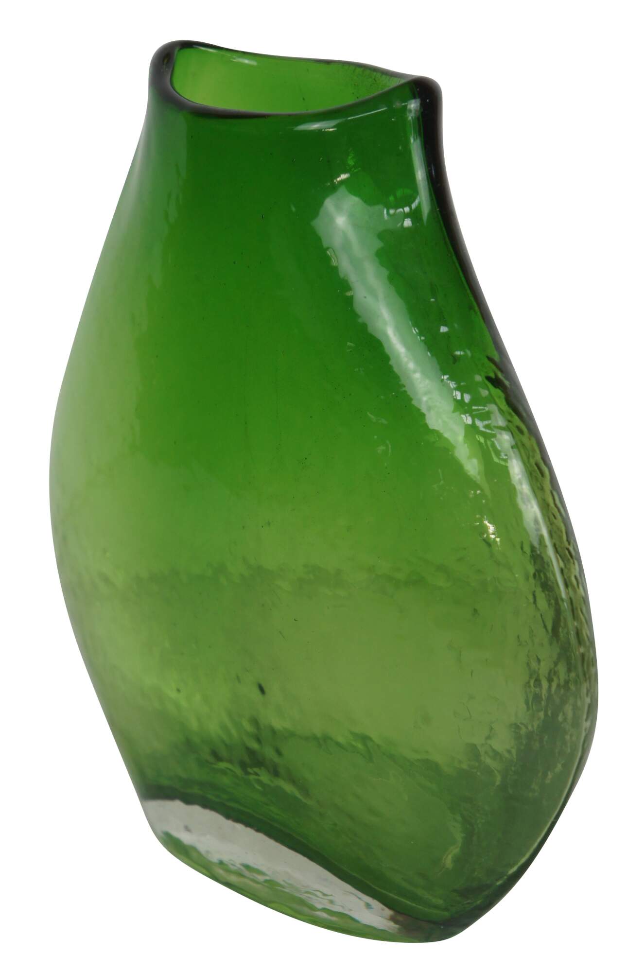 This piece is handmade vintage art glass with a modern flat bulb shape in a peridot shade of green.