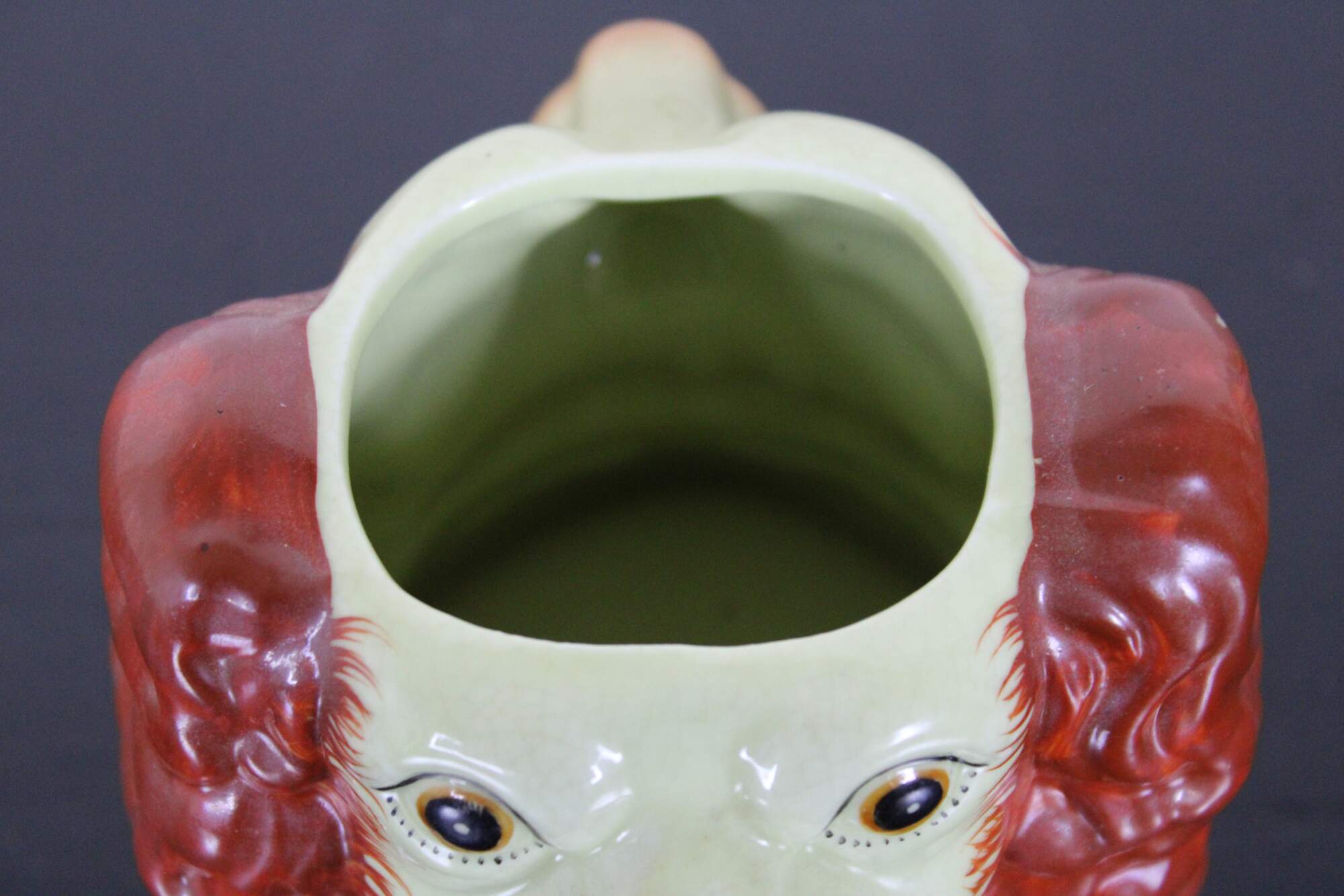British 19th Century crackle Staffordshire with iron red & black enamels, Two Faced Spaniel Head Candy Jar with collar and tag.