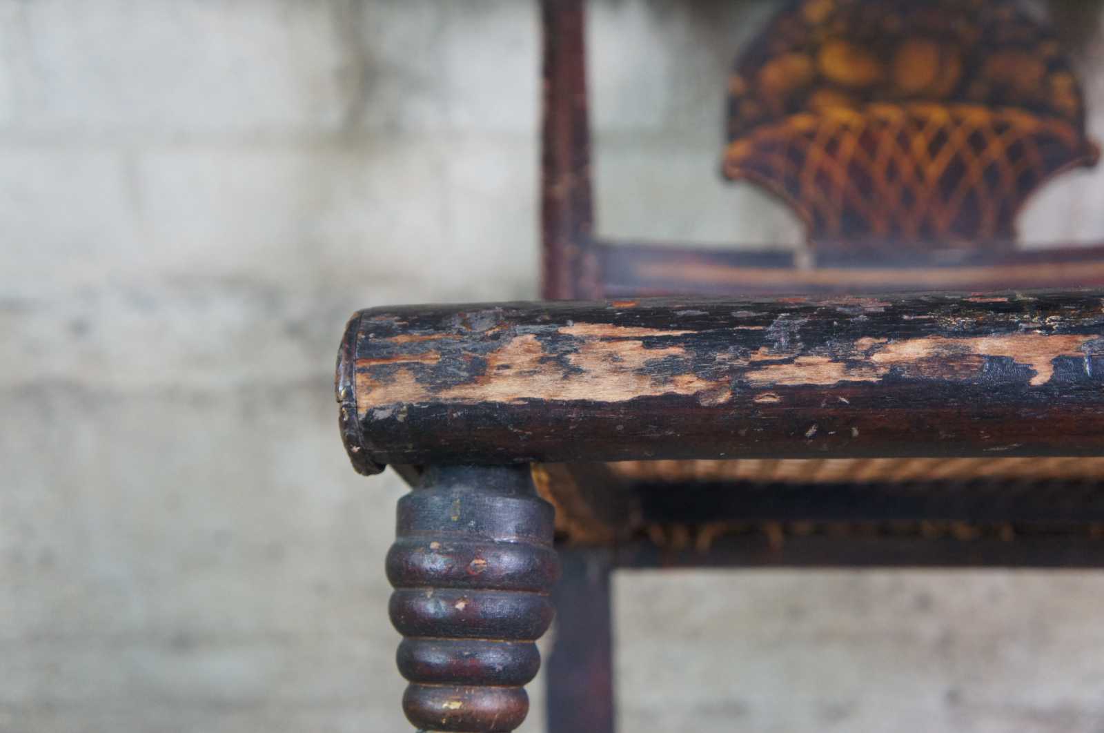 Mid 19th century stenciled Hitchcock dining chair featuring a fruit basket shaped back splat and cane seat.